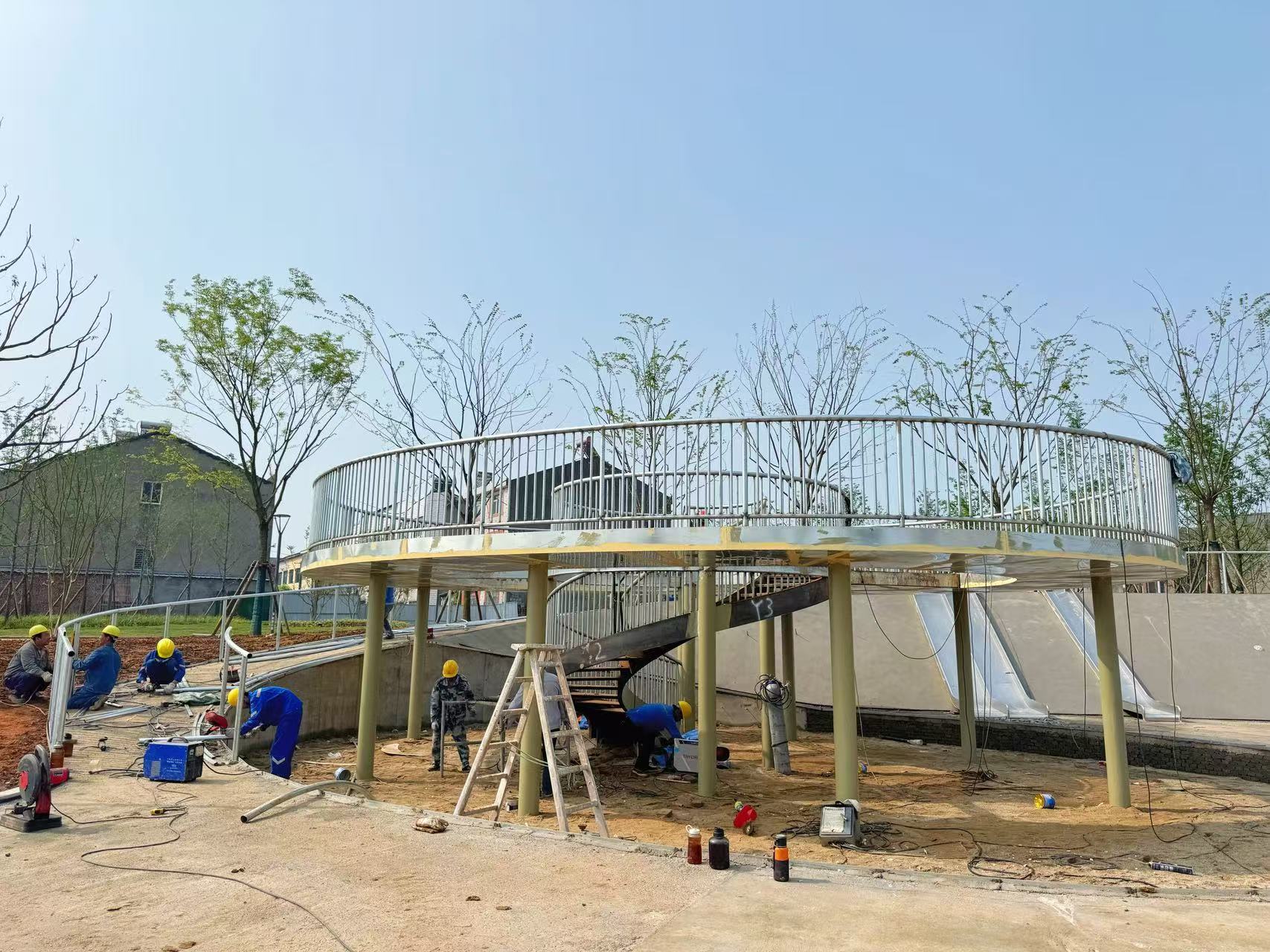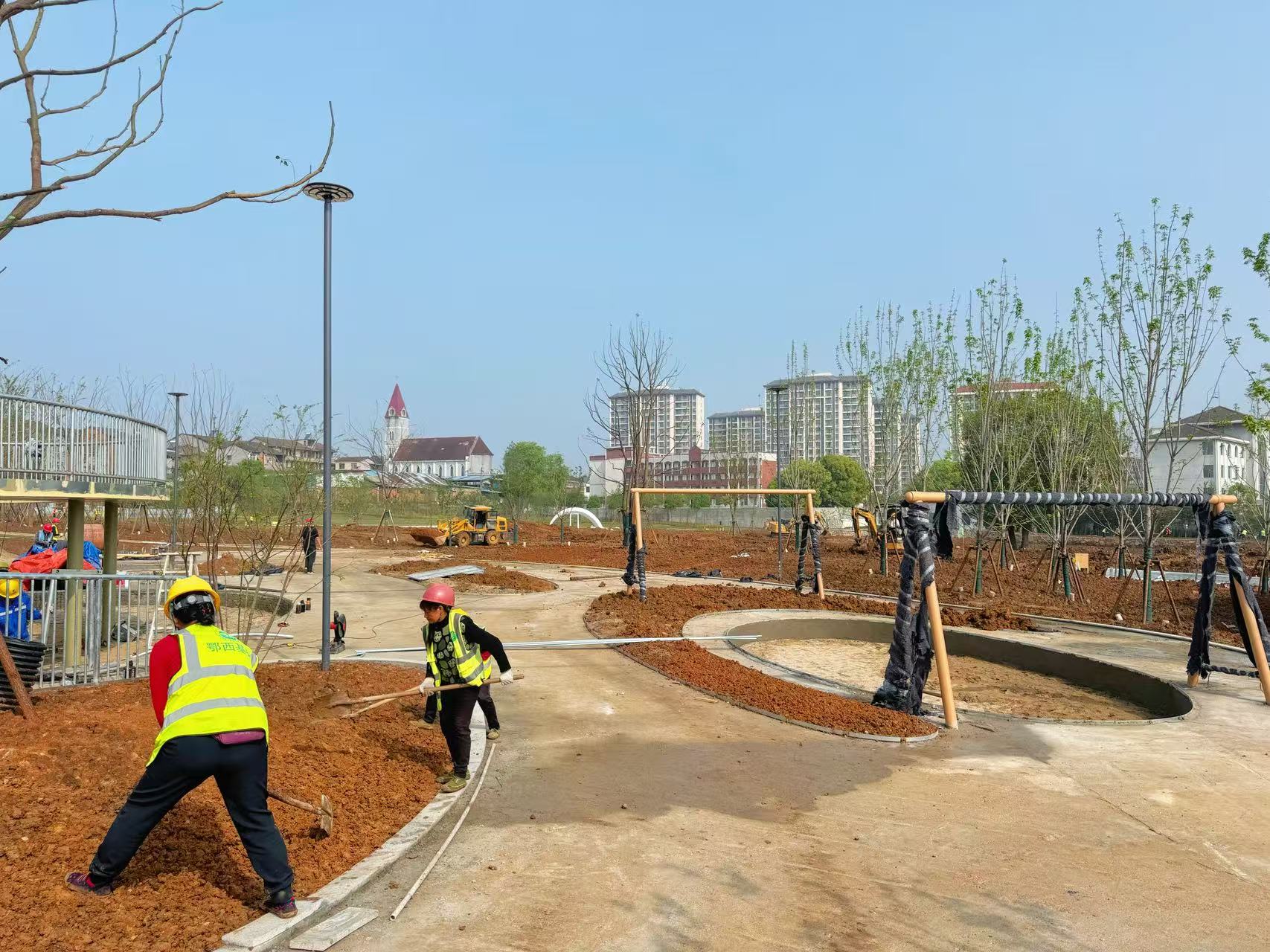 据施工现场负责人杨华介绍,项目于2026年1月正式进场施工,目前主体结构、乔木种植、道路铺装、配套照明等工程已基本完工。当前正集中推进绿化场地景观塑造、草皮铺设及各类装饰小品安装,后续将实施沥青刷黑和整体调试工作。项目整体进展顺利,预计今年5月中下旬具备对外开放条件。