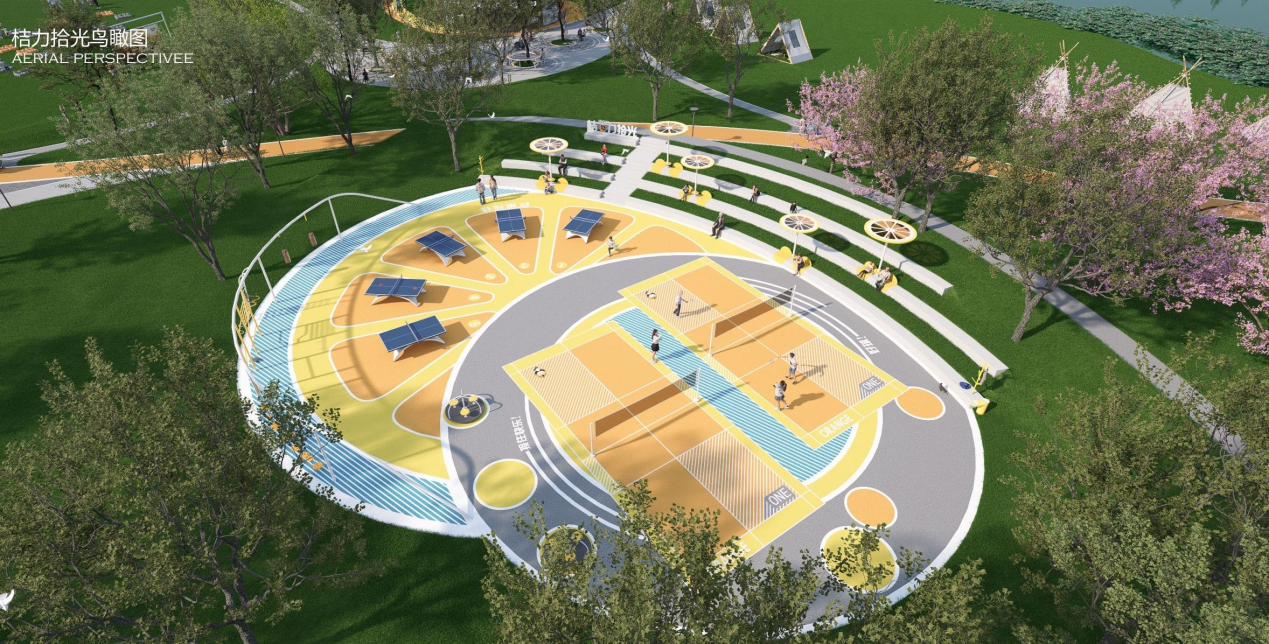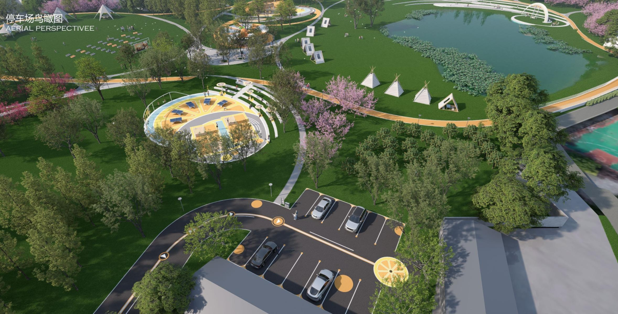 在功能布局上,公园设置了运动区、儿童游乐区、露营基地、荷花塘及“鹊桥同心”等网红打卡点。其中,690米慢跑道、羽毛球场、乒乓球场满足全民健身需求;“鹊巢秘境”无动力儿童游乐区配备沙坑、攀爬网等设施,打造全龄亲子友好空间;湖畔草坡及采摘园则承载露营、节庆及农耕体验功能。