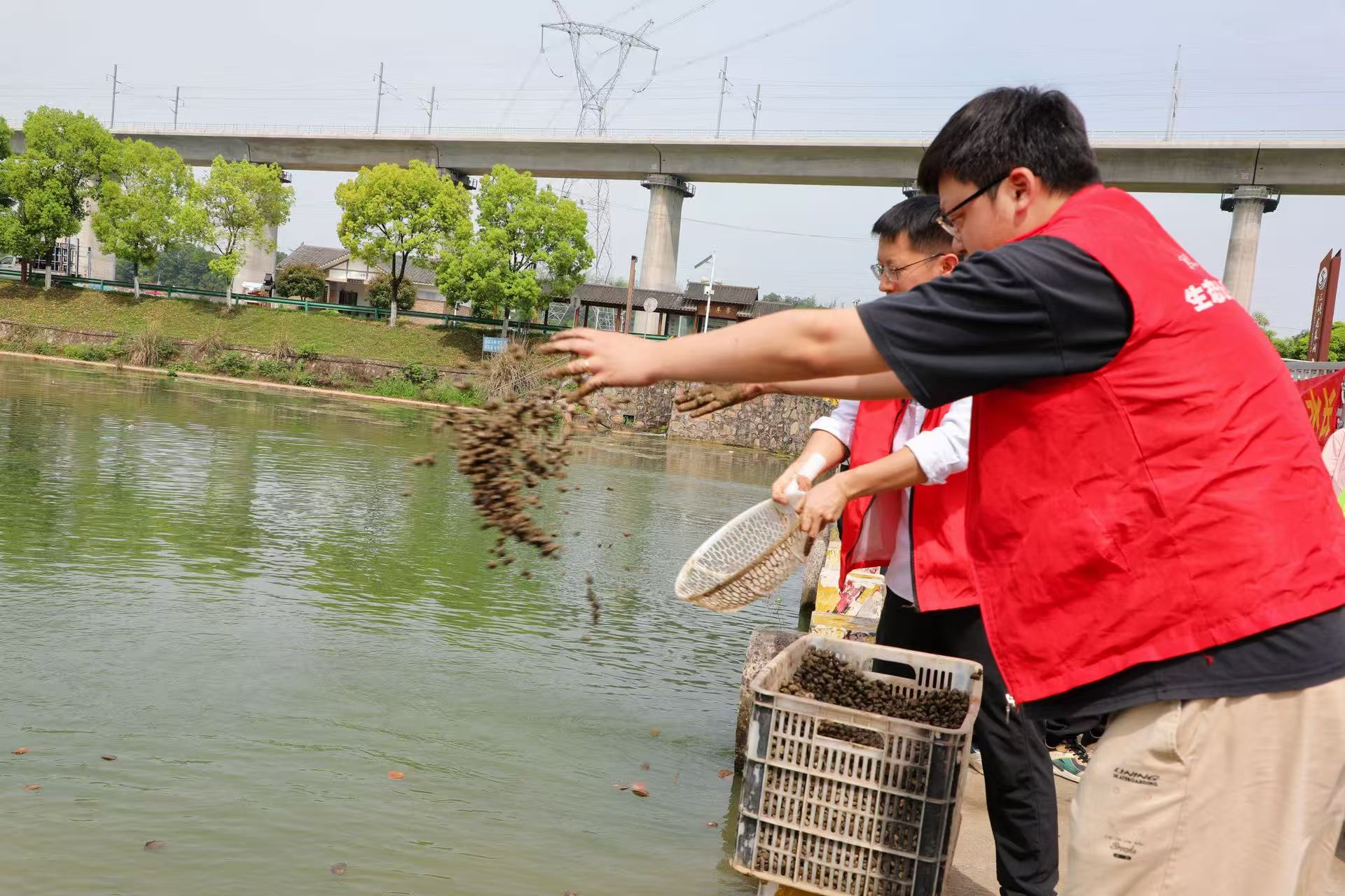 活动现场,青年职工们统一身着志愿者马甲,在技术人员指导下,有序领取鱼苗、投放水体。此次活动共放流鲢鳙3300斤、翘嘴60斤、鳜鱼160斤、螺蛳及蚌壳6000斤,有效补充了柏临河天然水域水生生物种群,对改善水体环境、维护生物多样性具有重要意义。
