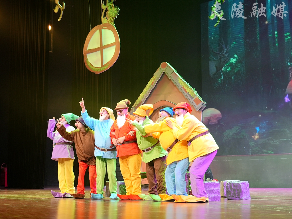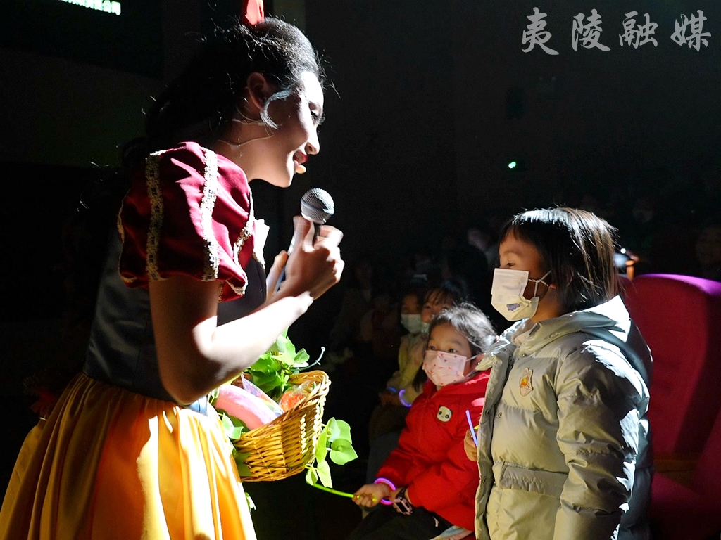 2月21日晚,在夷陵文化中心剧场,随着灯光暗下,舞台亮起,幕布徐徐拉开,童话故事中的小矮人、公主蹦跳着出场,和孩子们热情地打着招呼,由夷陵歌舞团创作的儿童剧《白雪公主》呈现在了观众眼前,赢得阵阵欢呼。