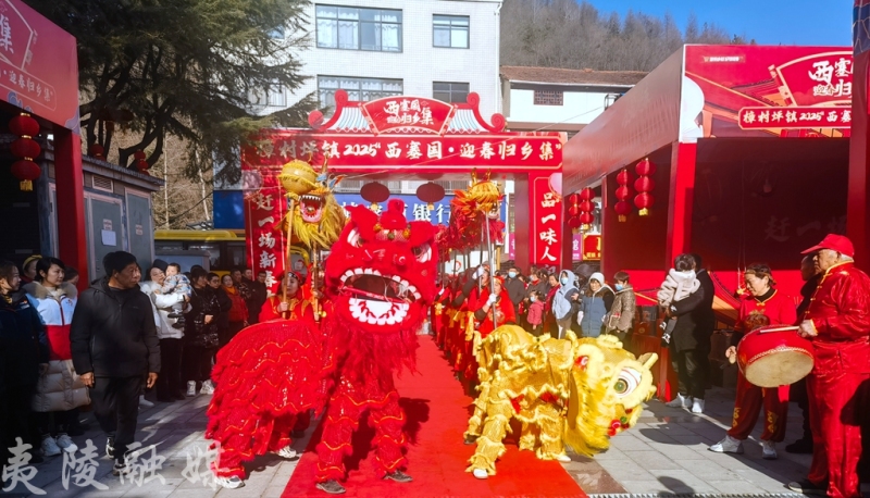 1月17日,樟村坪镇殷家坪村红灯高挂,红绸飘舞,处处洋溢着喜庆氛围,樟村坪镇“西塞国·归乡集”活动在这里热闹开启,吸引了众多游客、采购商和周边村民热情参与。