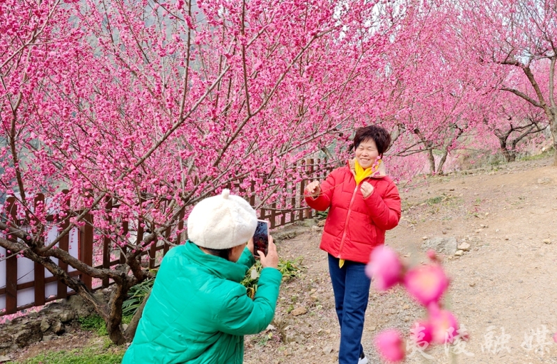 下牢溪畔珍珠坡,红色、粉色、白色的梅花漫山开放,远远望去仿佛一片片彩色云霞。进入梅园,一阵阵清幽的香气直冲鼻腔,昭示着冬去春来。游客们在梅园中的步道上漫步、拍照,游客的笑脸与如霞似雪的梅花相映成趣,编织出一幅生机勃勃的赏梅画卷。