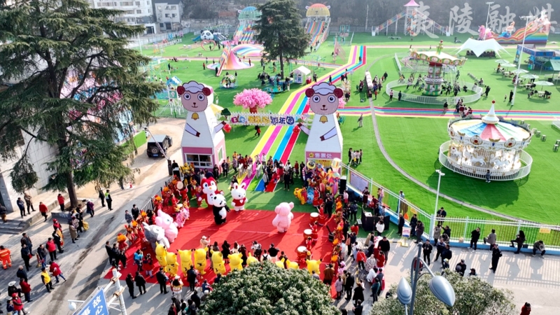 2月18日,夷陵区首个大型户外亲子游乐园贝乐谷游乐园正式开业。活动现场,舞狮随着鼓声跳动,身着玩偶服的工作人员在门口逗乐,孩子们在家长的陪同下玩得不亦乐乎,各个游乐项目人气满满,现场一片热闹之景。