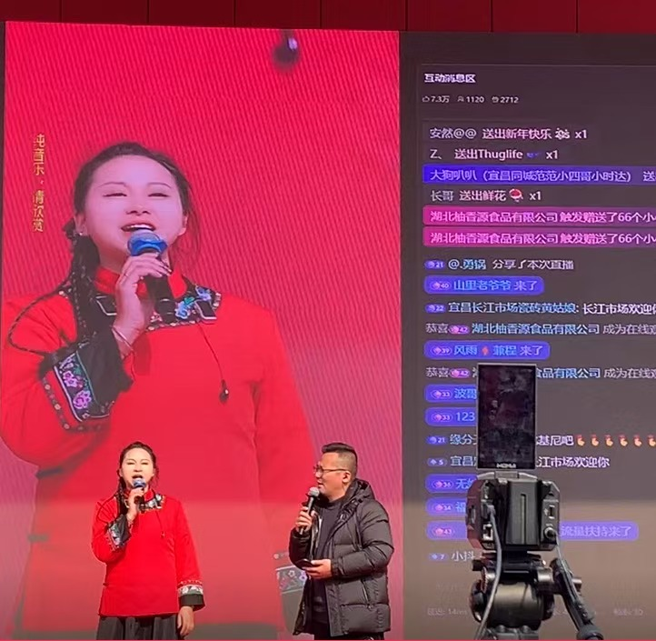 “荆楚购·宜起购”2025夷陵区“金蛇献瑞 共庆新春”跨年迎新消费季系列活动在长江市场中心广场热闹开启。网络达人潘贝贝团队在夷陵万达开展了为期10余天的现场直播,助力“夷陵万达迎新消费暨四周年店庆系列消费活动”。期间,土豆村长、村长的春秀、三峡华蓉、湖北三妹儿、松韵先生、长江阿杰、饶小玉等网红主播们纷纷走上舞台、开启直播活动,在线人数高达6000人以上,为重点商圈聚人气、增年味、拉动线下消费,线上线下联动的消费形式极大地方便了老百姓购物。据黄花镇崇恩鹿业主播鹿小可介绍,年货节期间,通过直播引流的营业额已突破万元。