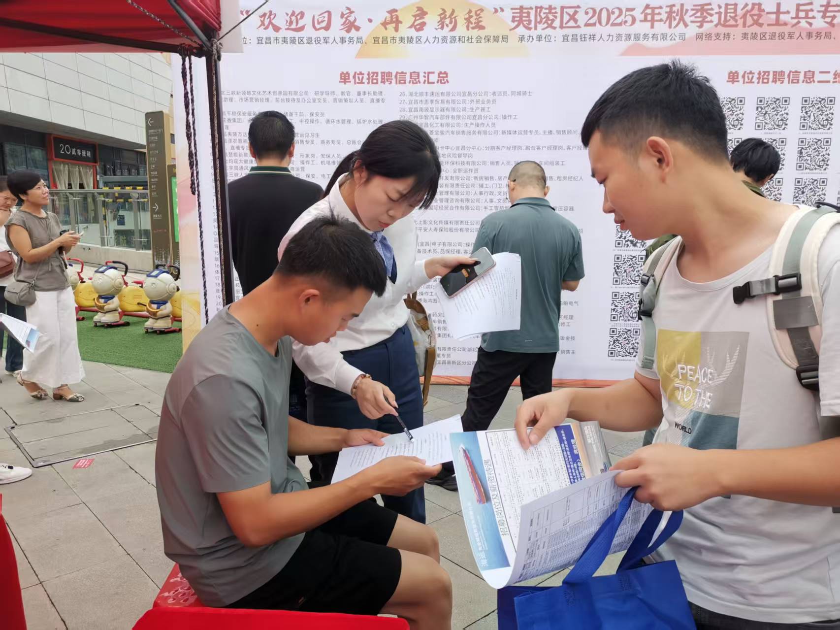 为促进返乡退役军人高质量就业,让他们在“家门口”就能实现就业梦想,夷陵区退役军人事务局于9月12日在夷陵万达广场举办2025年秋季自主就业退役士兵专场招聘会。此次招聘会吸引了众多退役军人及家属前来参与,为退役军人与用人单位搭建了良好的沟通平台。