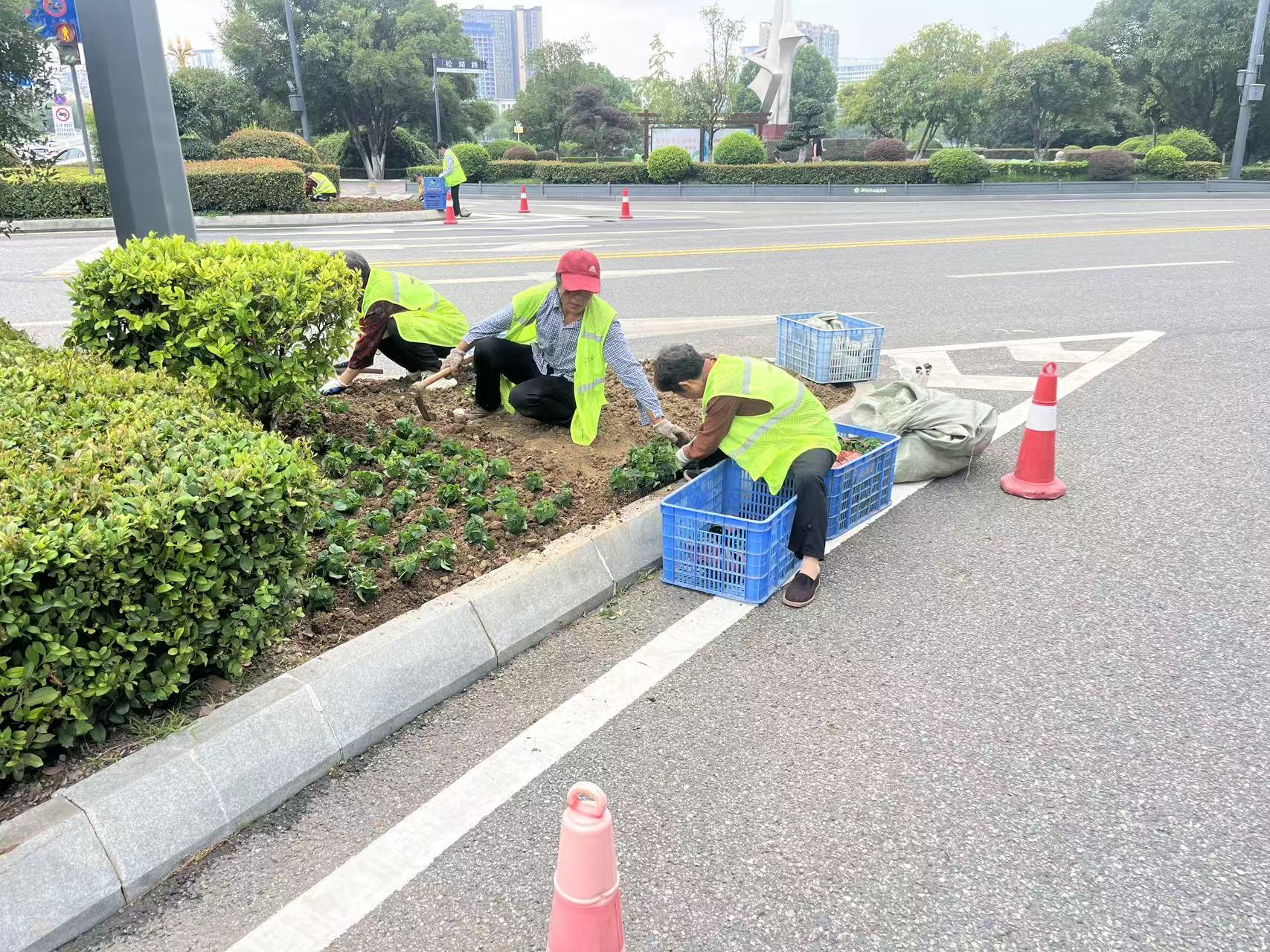 目前花卉栽植已基本完工,后续将加强浇水、除草、施肥等精细化养护,全力延长花卉观赏期。据区园林中心工作人员介绍,此次布景兼顾美观与可持续性,力求以最美姿态迎接八方游客,营造喜庆、整洁、优美的城市环境,让市民游客在“双节”期间尽享秋日花景盛宴。