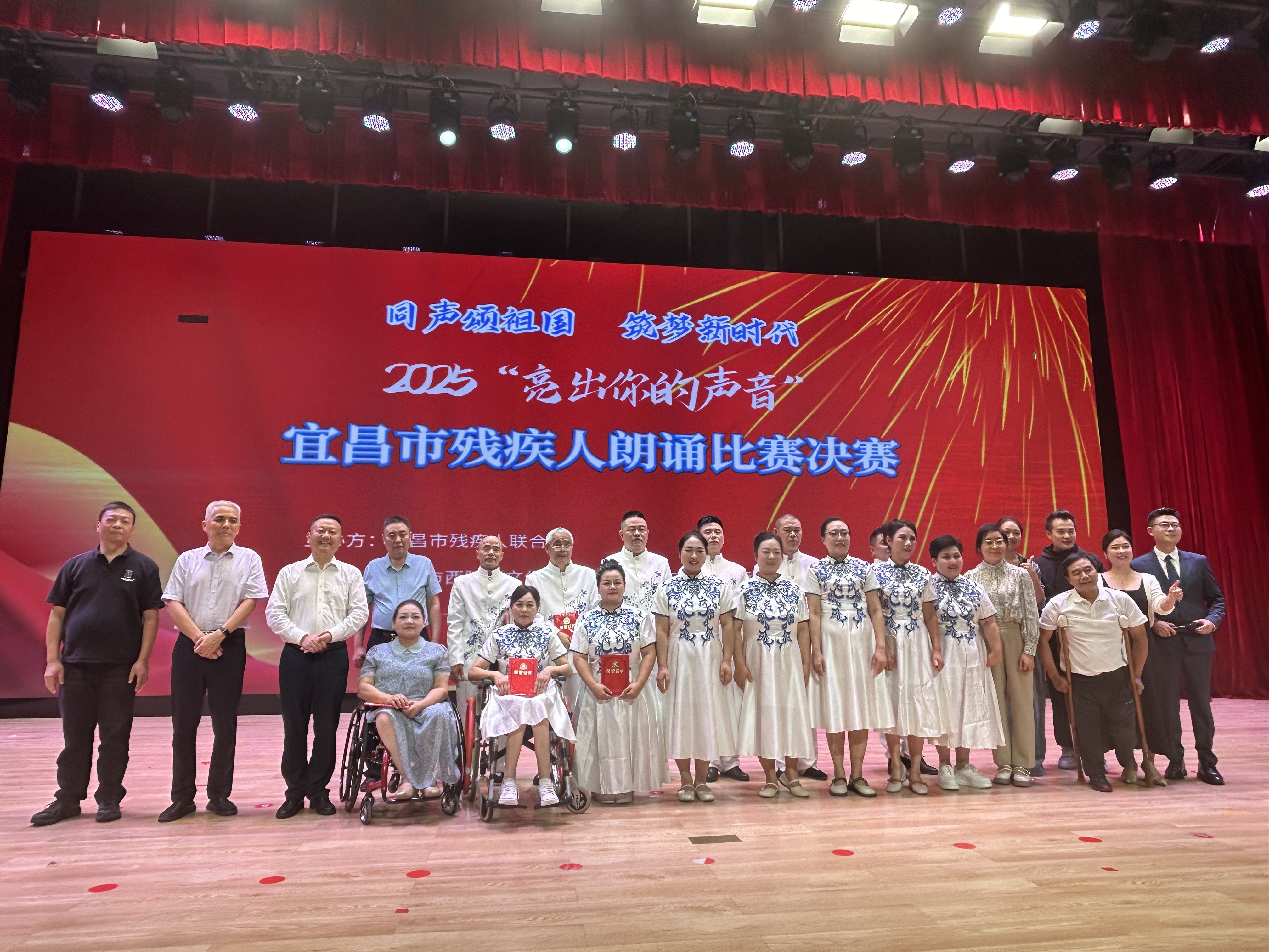 9月25日,宜昌市残疾人“亮出你的声音”朗诵比赛决赛在温馨而热烈的氛围中圆满落幕。来自全市14个县市区的15名选手齐聚一堂,用真诚的声音传递情感,用动人的表达展现自我。经过精彩角逐,夷陵区选送的残疾人选手取得了优异成绩:熊宜获得二等奖,黄海玲、刘玉华、周志芳获得三等奖。