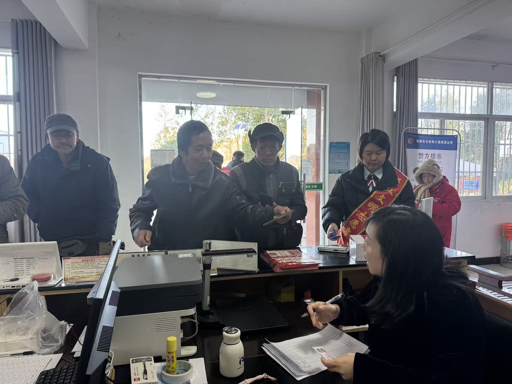 在小溪塔街道新合村委会,黄金路支局工作人员与村干部紧密配合,通过发放“医保+金融”政策明白纸、面对面案例讲解、现场操作演示等方式,既向村民细致解读医保缴费标准、报销范围、缴费时限等核心政策,又同步普及手机银行安全操作、防范电信诈骗、存款保险等金融知识。针对农村老年人“看不清界面、不会操作手机”的实际难题,“一对一”指导村民完成线上缴费,对无智能手机或操作困难的老人,则现场核对信息后代为办理缴费手续,真正实现 “缴费不出村、服务零距离”。