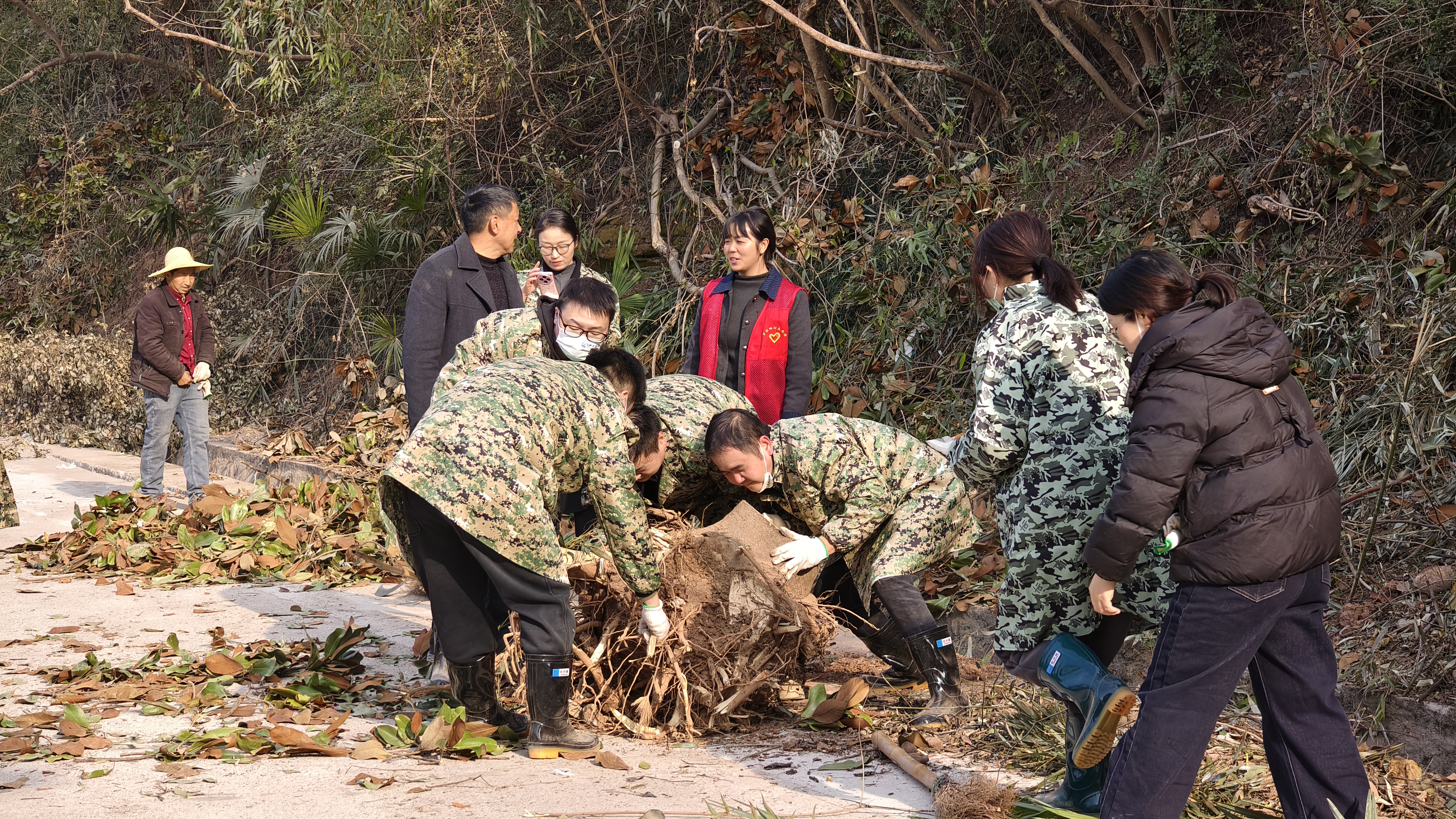 清晨,学员们以“劳动最光荣”为主题,手持工具徒步至周家窝子山沟,投入清渠除草劳动。寒风凛冽,热情不减,大家分工协作,清运堆积的杂物和枯枝,为改善村容环境贡献了一份实实在在的力量。