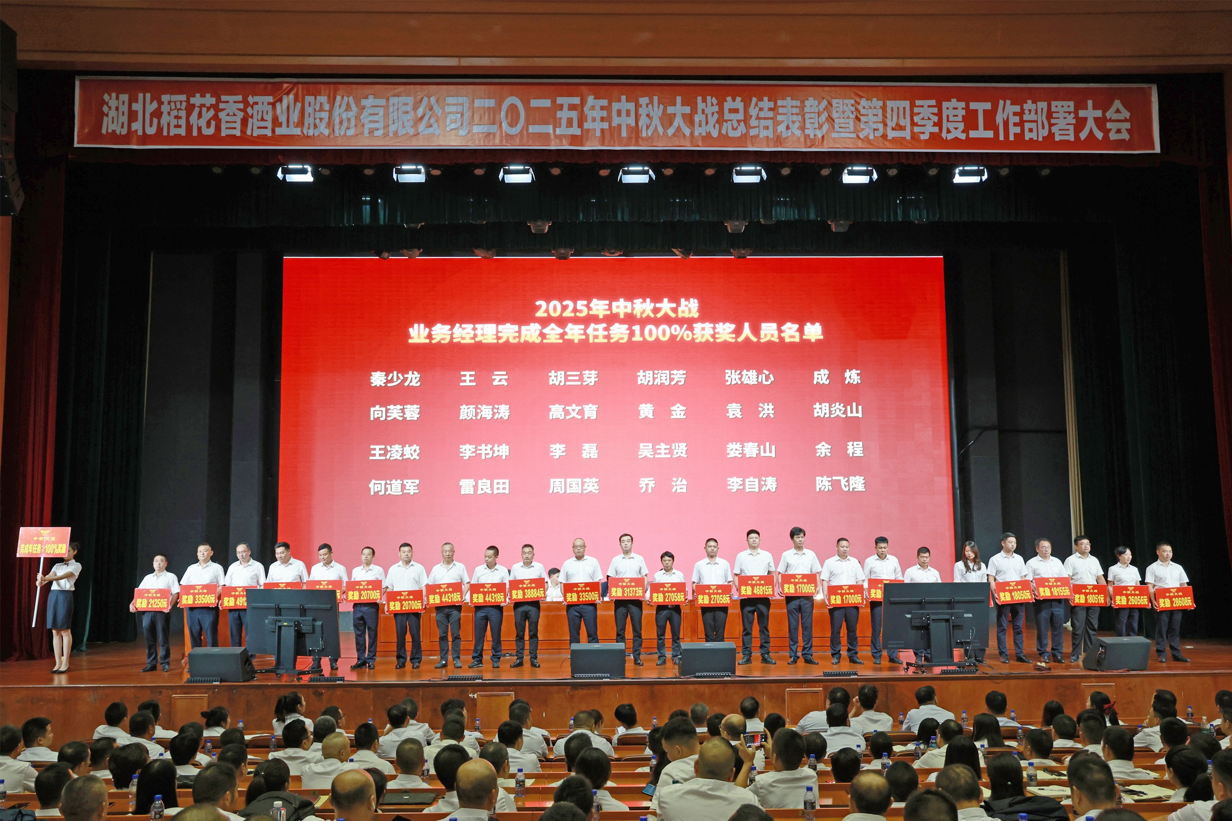10月11日,稻花香酒业2025年中秋大战总结表彰暨第四季度工作部署大会在稻花香大礼堂举行,总结中秋战绩,表彰营销先进,凝聚全员合力,锚定四季度任务再提速、再加压、再发力,推动市场量级全面提升,夯实决胜全年基本盘。