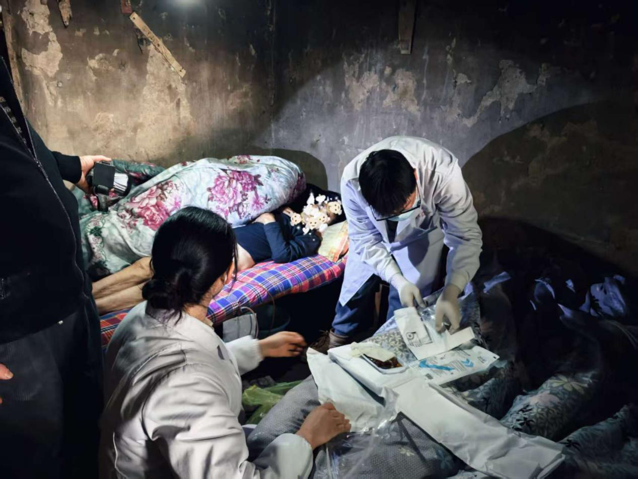 12月2日清晨,邓村乡卫生院医护人员前往杜爷爷家中,娴熟地为他更换留置尿管。