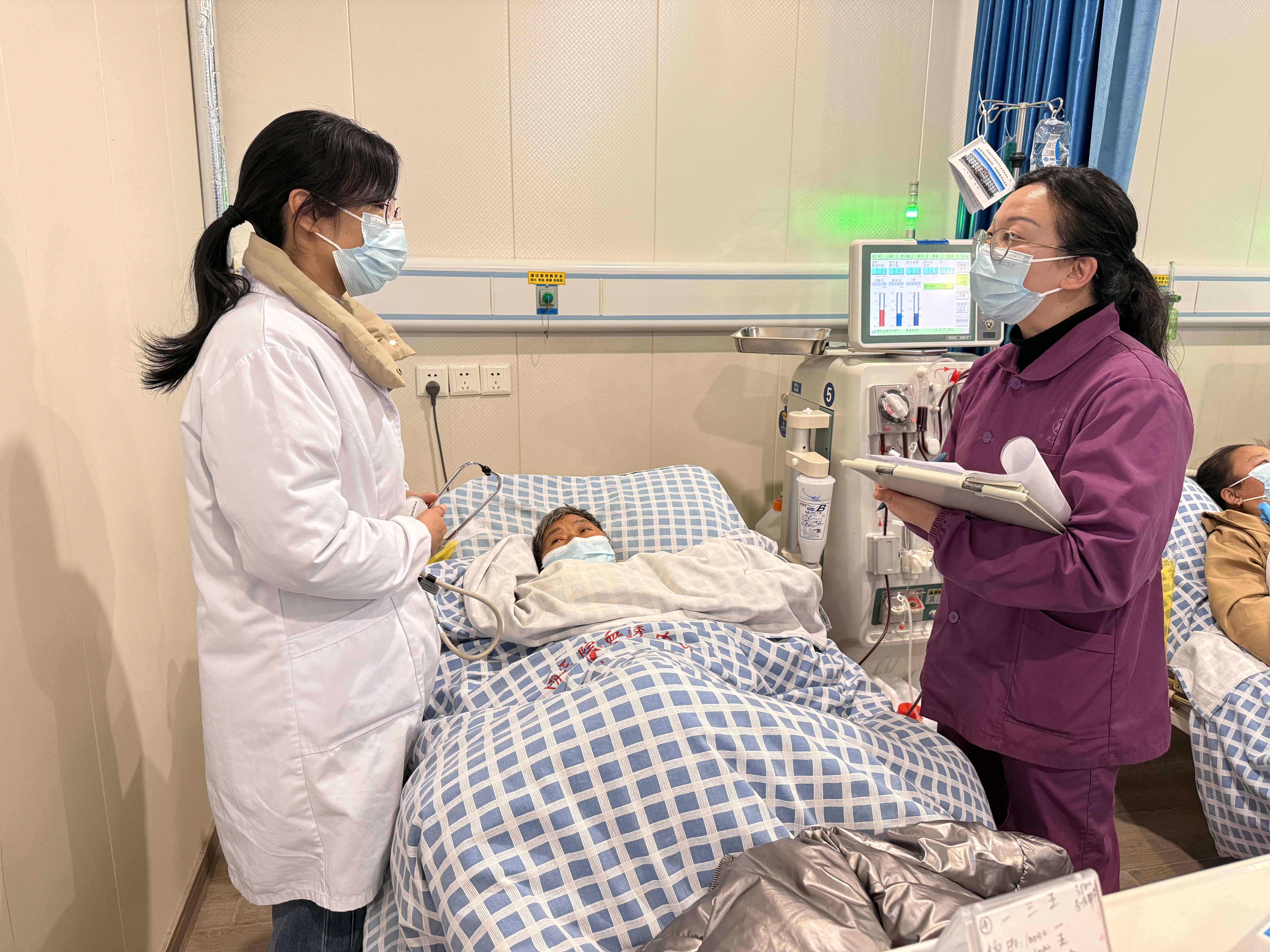 讲座结束后,胡琴兰主任专家团队还逐一查看透析患者动静脉内瘘的穿刺部位、血管条件、通畅情况。随后深入病床,细致询问患者病情,精准调整透析方案,并就内瘘穿刺、并发症管理等关键问题,对年轻医护人员进行了现场指导与答疑,极大提升了科室的诊疗水平。