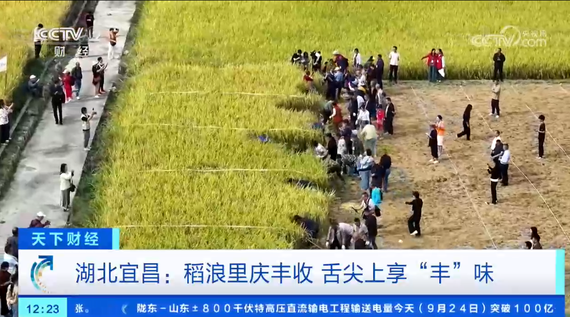 9月24日,央视CCTV-13【新闻直播间】栏目和CCTV-2【天下财经】栏目,分别以《在希望的田野上·湖北宜昌:稻浪里庆丰收 舌尖上享“丰”味》和《湖北宜昌:稻浪里庆丰收 舌尖上享“丰”味》为题,报道了夷陵区2025年“稻田丰收嘉年华”活动。