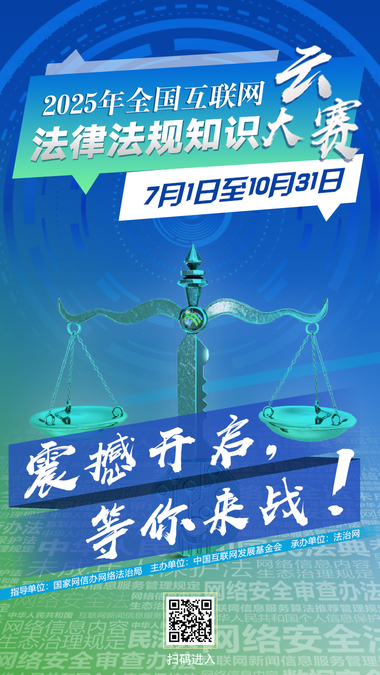 精准普法全面覆盖,共筑清朗网络家园。由国家网信办网络法治局指导、中国互联网发展基金会主办、法治网承办的“2025年全国互联网法律法规知识云大赛”(以下简称“云大赛”)于7月1日正式拉开帷幕。