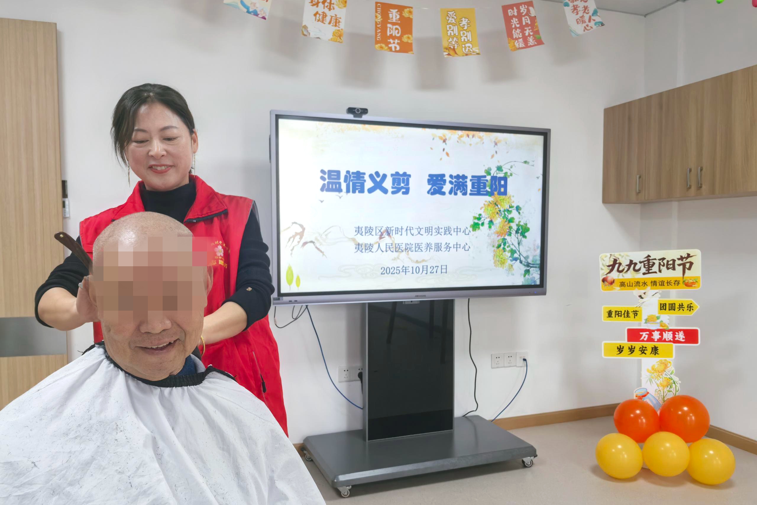10月27日,在夷陵区新时代文明实践中心的支持下,志愿者们带着工具来到中心,重点为失能、半失能长者解决“理发难”问题,他们耐心询问老人的发型需求,细致地修剪发丝,推剪声与谈笑声交织成温馨的画面。不到两小时,老人们个个精神焕发,银发齐整,脸上露出了满意的笑容。