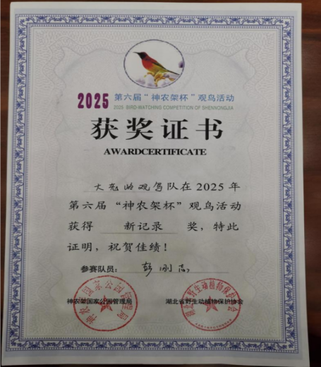 10月28日,在第六届“神农架杯”观鸟活动中,大老岭观鸟队凭借记录到的新鸟种——北棕腹鹰鹃,成功摘得“新纪录奖”。