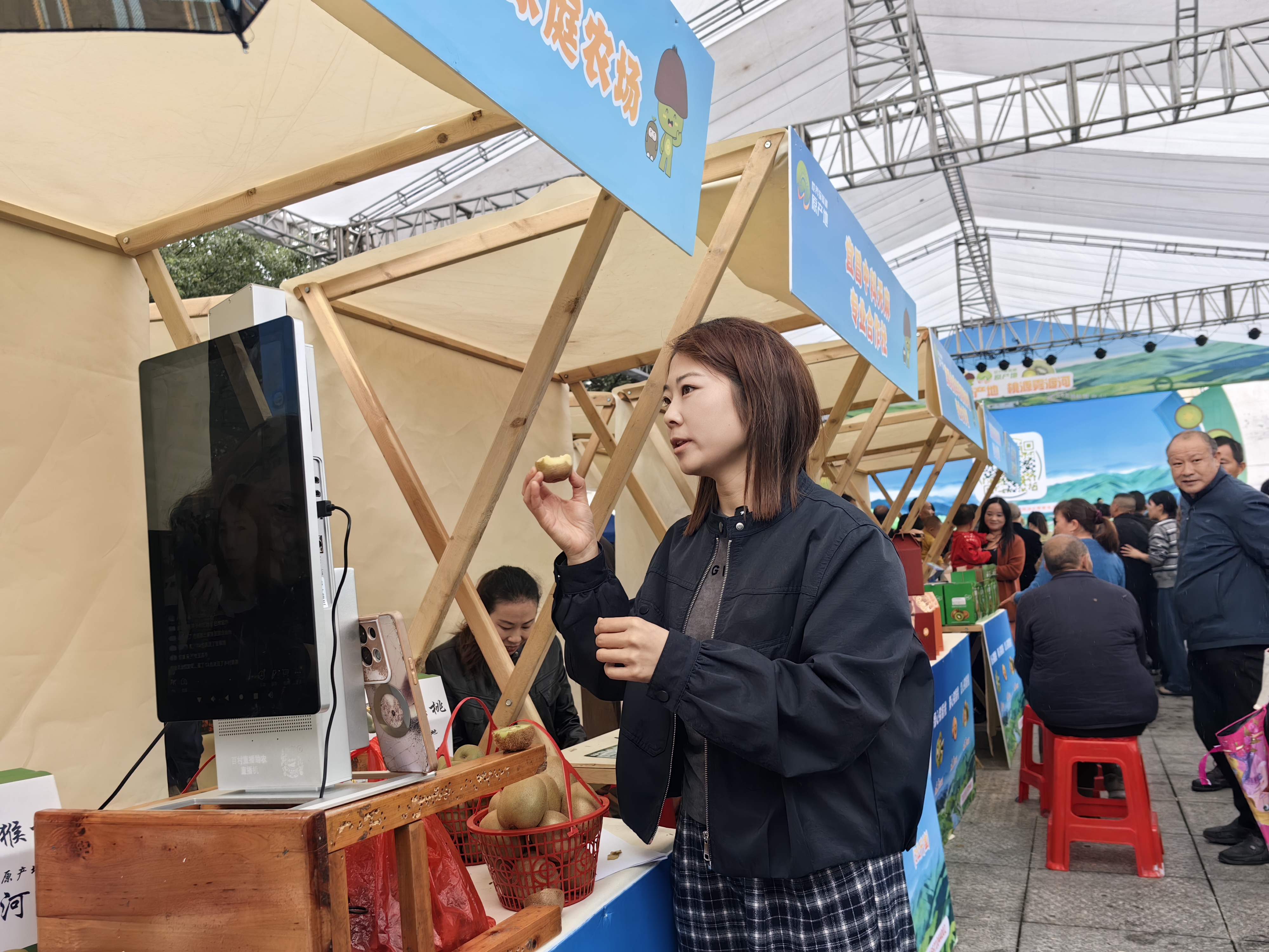 活动现场,宜昌原产地商品官方旗舰店与雾渡河镇联村党建协调委员会相关代表签署猕猴桃采购合作协议,双方将依托村社共建平台建立长期稳定的采购合作机制,助力雾渡河镇猕猴桃拓宽销售市场,带动农户增收致富。农产品展销区同步开启“线下活动引流+线上直播带货”模式,观音堂村村干部化身主播实时带货,镇内8家市场主体集中推介猕猴桃、大米、苹果、天麻等特色农产品,现场人气爆棚,销售成果喜人。