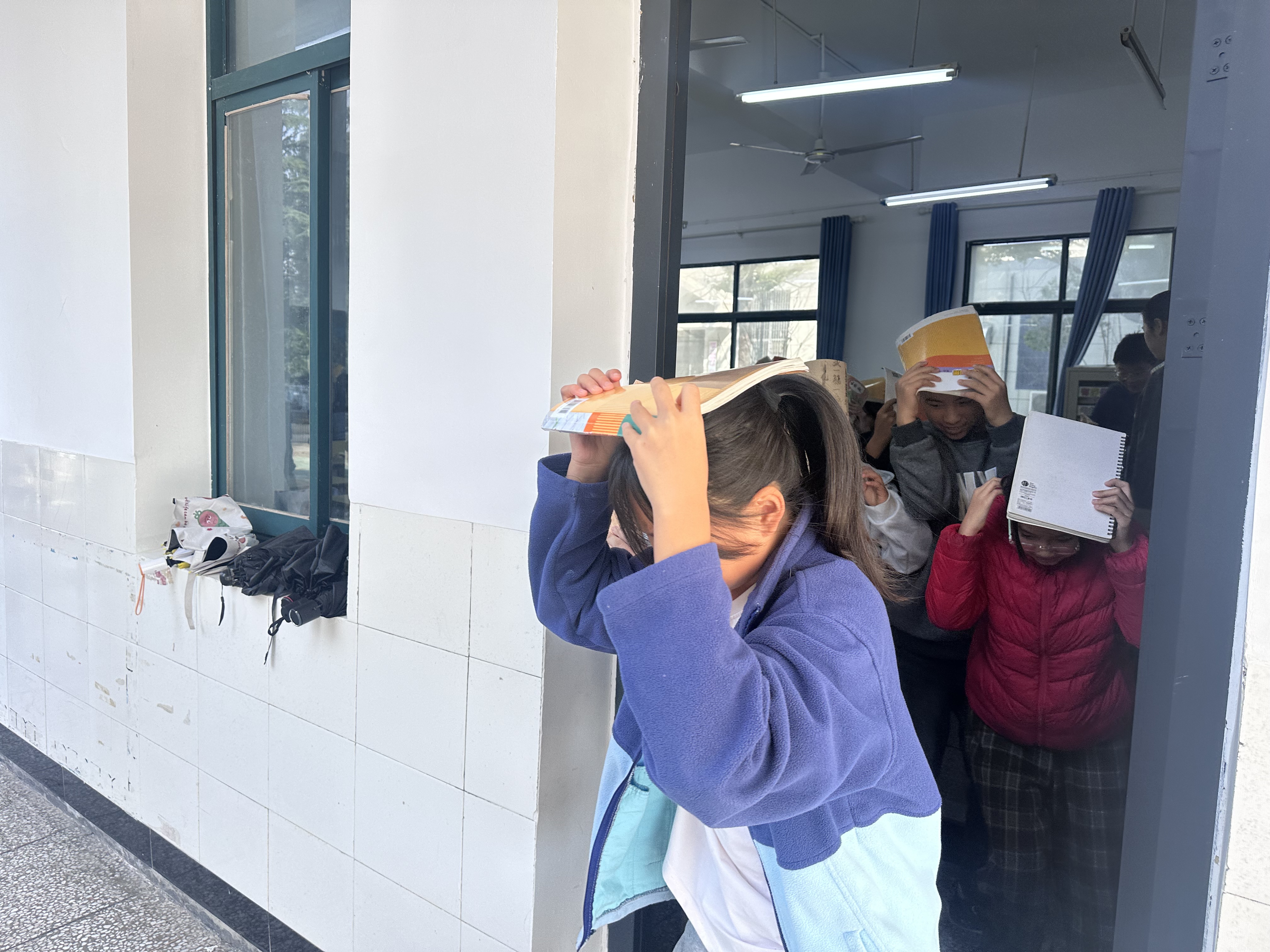 随着第一次警报声响起,演练正式开始。各班学生迅速反应,在任课老师的指挥下立即蹲于课桌下方,用书包或书本护住头部,进行紧急避险。当第二次警报响起时,全体学生在班主任和楼层导护教师的引导下,按照预定疏散路线,弯腰低身、双手护头,快速有序地向操场安全地带撤离。整个过程各岗位人员值守到位、协调有力,学生们沉着冷静、动作规范,未出现拥挤、推搡等意外情况。全体师生安全抵达集结地点后,各班立即清点人数并上报政教主任田敏。田敏对本次演练进行了总结,充分肯定了师生们的表现,并再次强调了掌握应急避险技能的重要性。