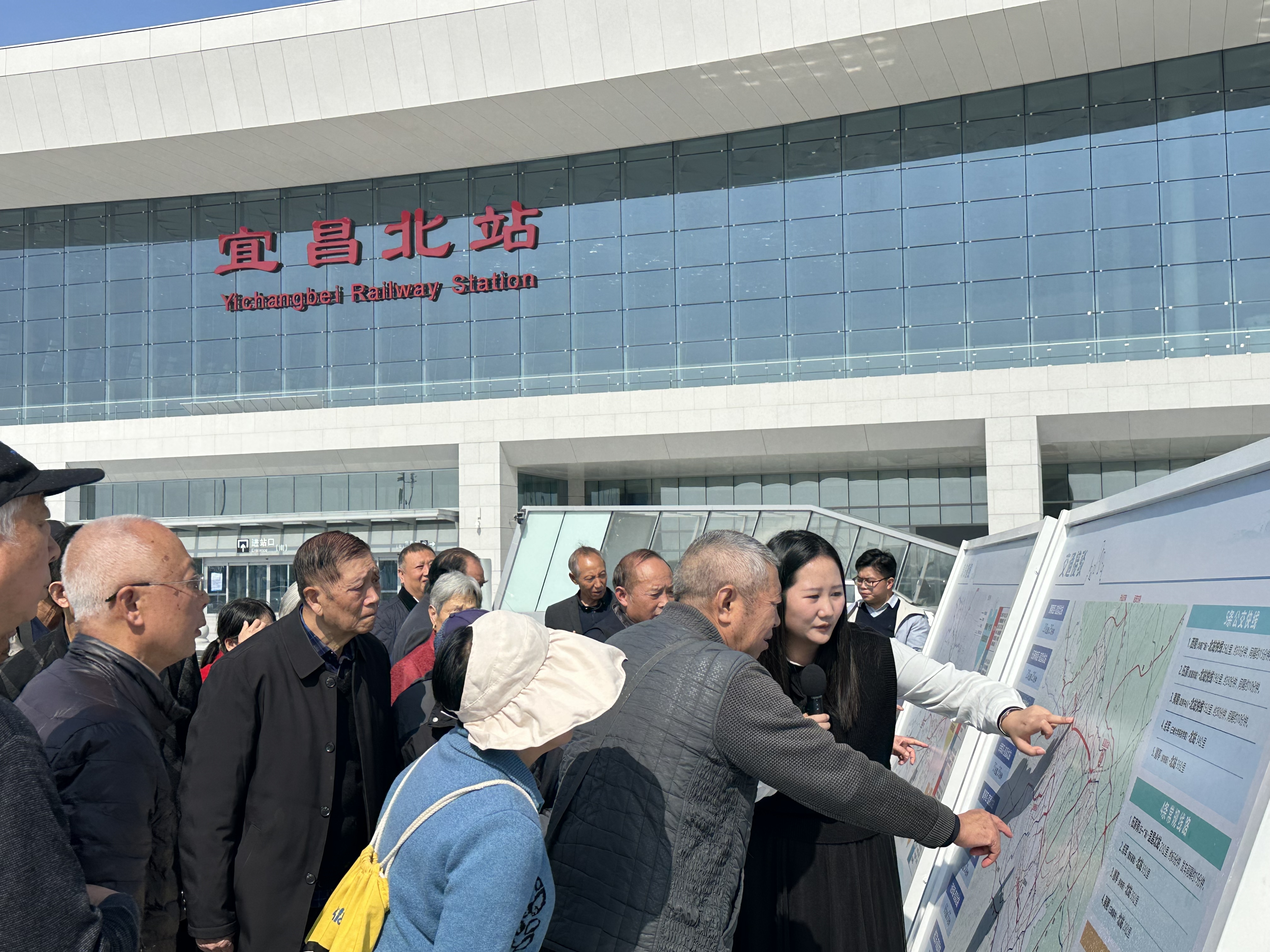 活动最后一站抵达宜昌高铁北站,作为沿江高铁武汉至宜昌段的终点站,这里不仅是重要的交通枢纽,更是冉冉升起的城市新地标。在讲解员的引导下,老同志们边走边看、边听边问,面对巍然屹立的现代化站房与四通八达的交通规划图,大家由衷感慨:“咱们宜昌的交通真是越来越便捷了!”