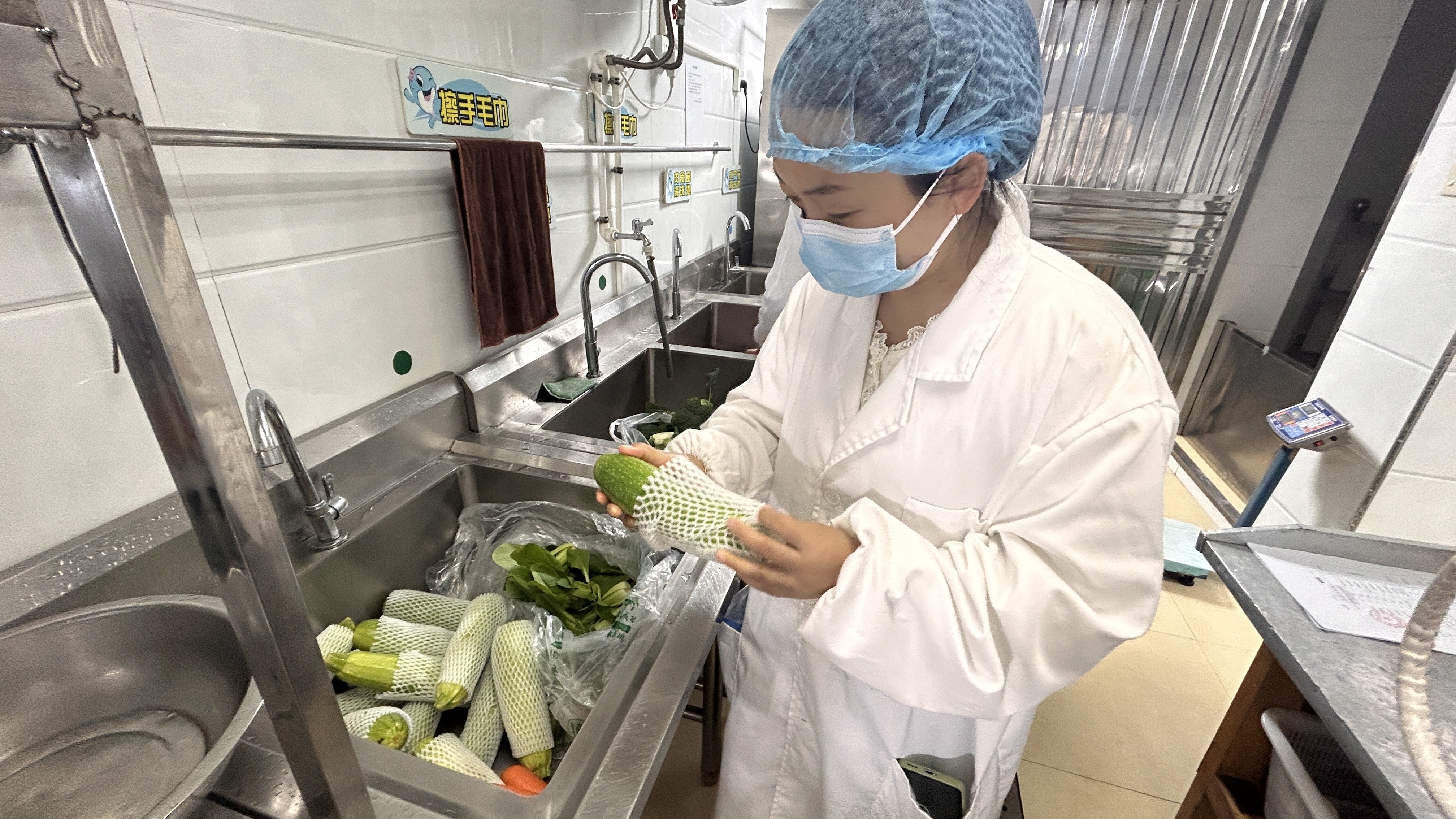 走进食堂,家长们对照食谱,对当日送达的蔬菜、肉类、水果等食材进行了细致检查,重点查看食材的新鲜度、生产日期、检疫合格证明,确保所有食材来源正规、安全可靠。