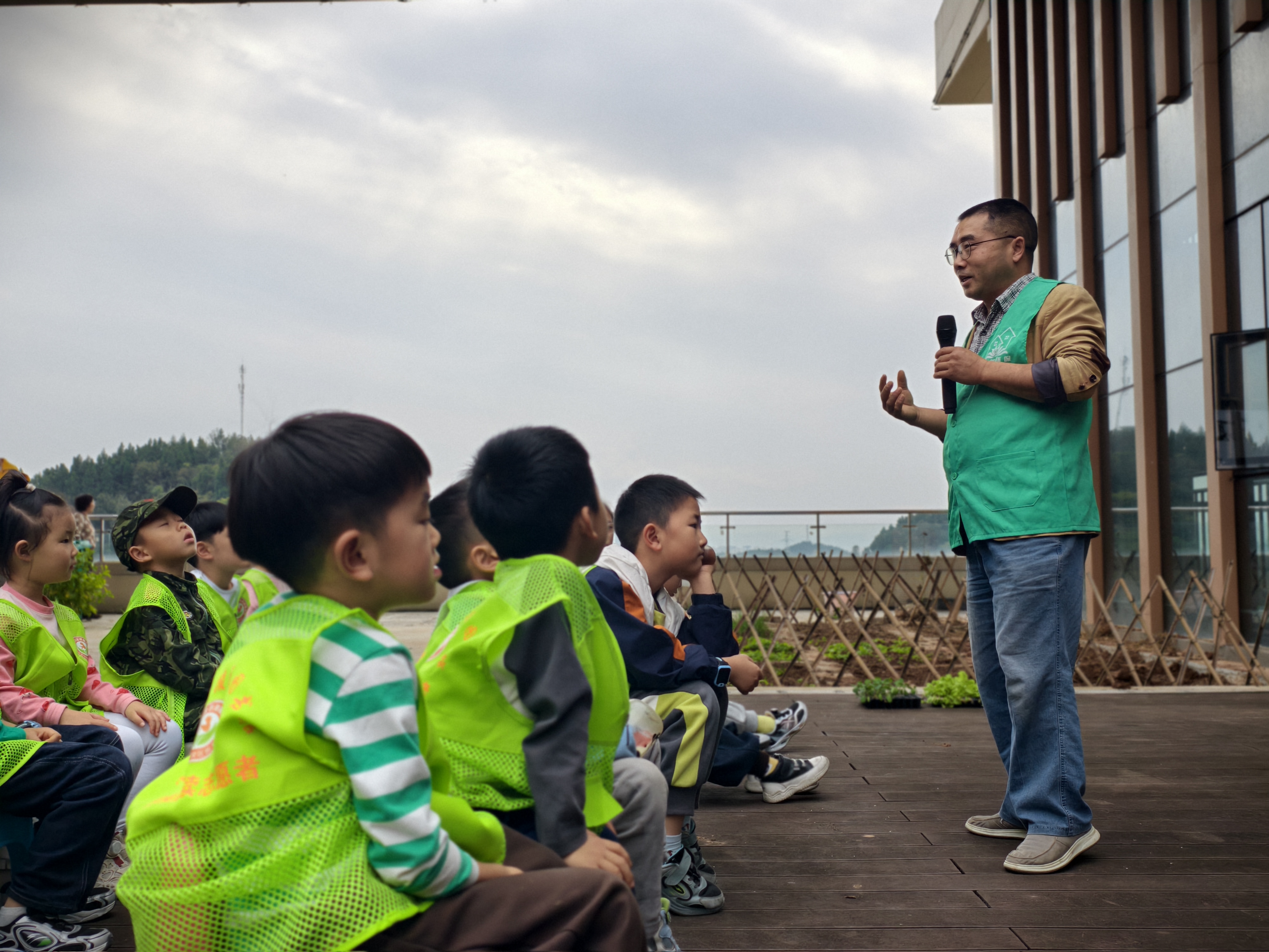 田边绘本阅读环节,老师带领亲子家庭沉浸在自然主题的故事中,在书香与泥土气息的交融中开启;节气微课堂上,自然教育老师结合萌芽菜园的实景风貌,生动讲解立冬时节的农耕习俗、气候特点,以及当季蔬菜的生长特征,让孩子们在观察中了解节气与自然的关联。