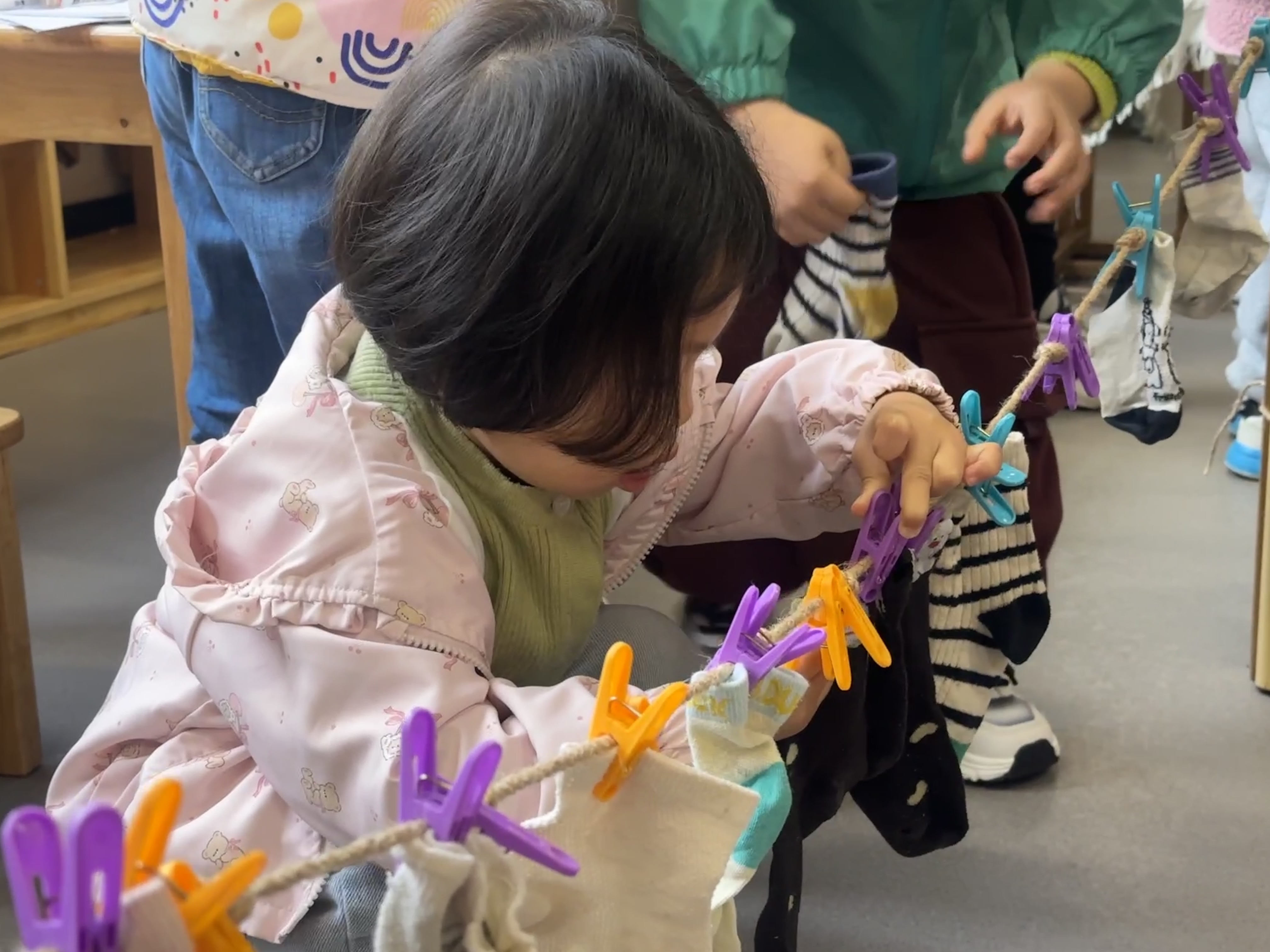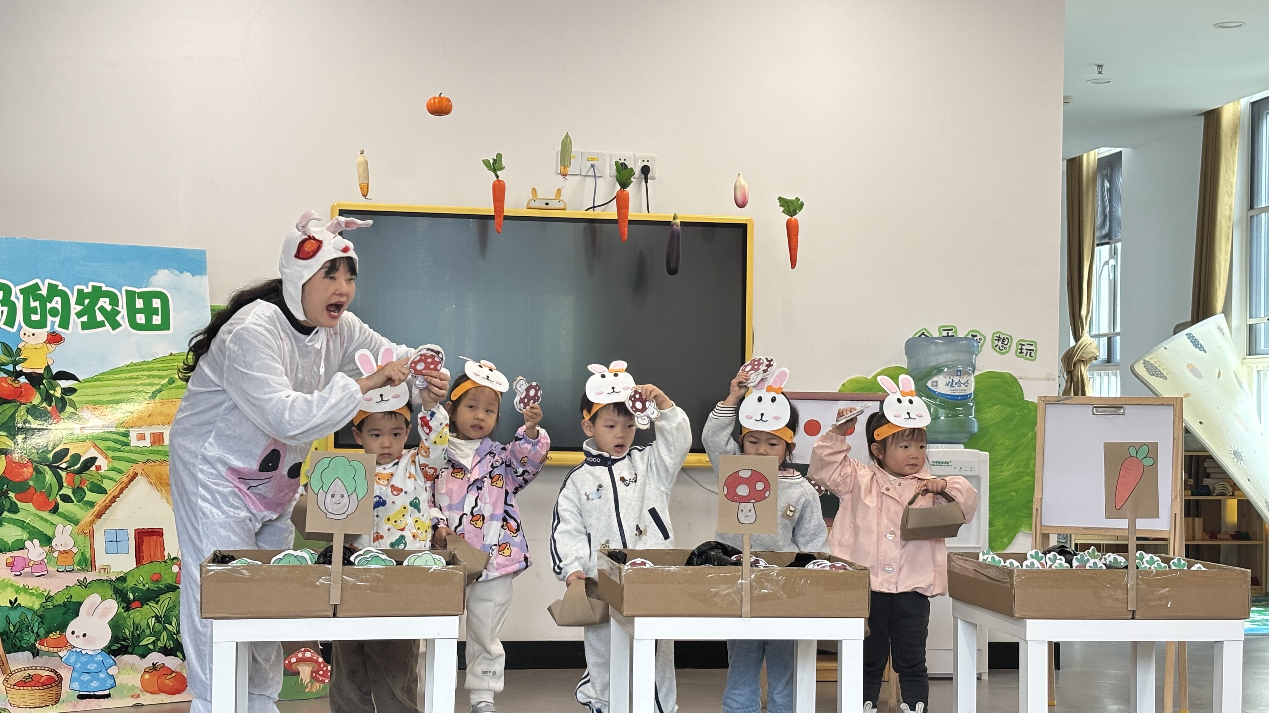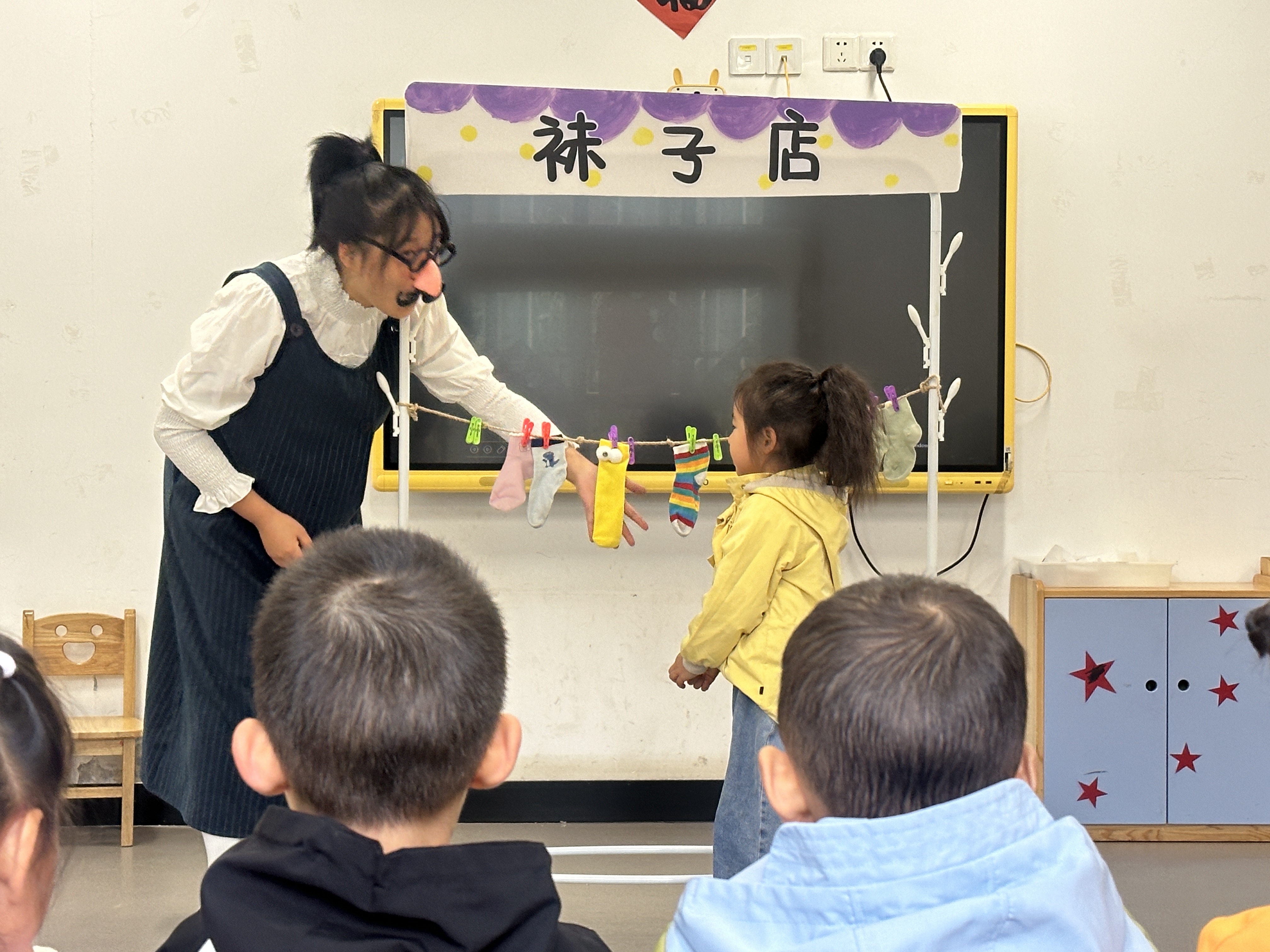 从简单的计数到复杂的推理认知,教师们以精心设计的教学环节、生动有趣的教学方法,引领孩子们在数字的海洋里遨游,在形状的世界中探索。其中朱婷婷老师的小班活动《眼镜老板的袜子店》以生动情境贯穿始终,引导幼儿在帮助“眼镜老板”整理袜子的过程中,学习按颜色、图案、长短进行多维度配对,巧妙将数学认知与生活应用融为一体,充分体现了“玩中学”的教育理念。石榴青老师的中班活动《大熊的储藏室》以绘本情境贯穿始终,引导幼儿逐步学习按颜色、形状、种类等不同特征进行分类,并尝试具有挑战性的“二次分类”。