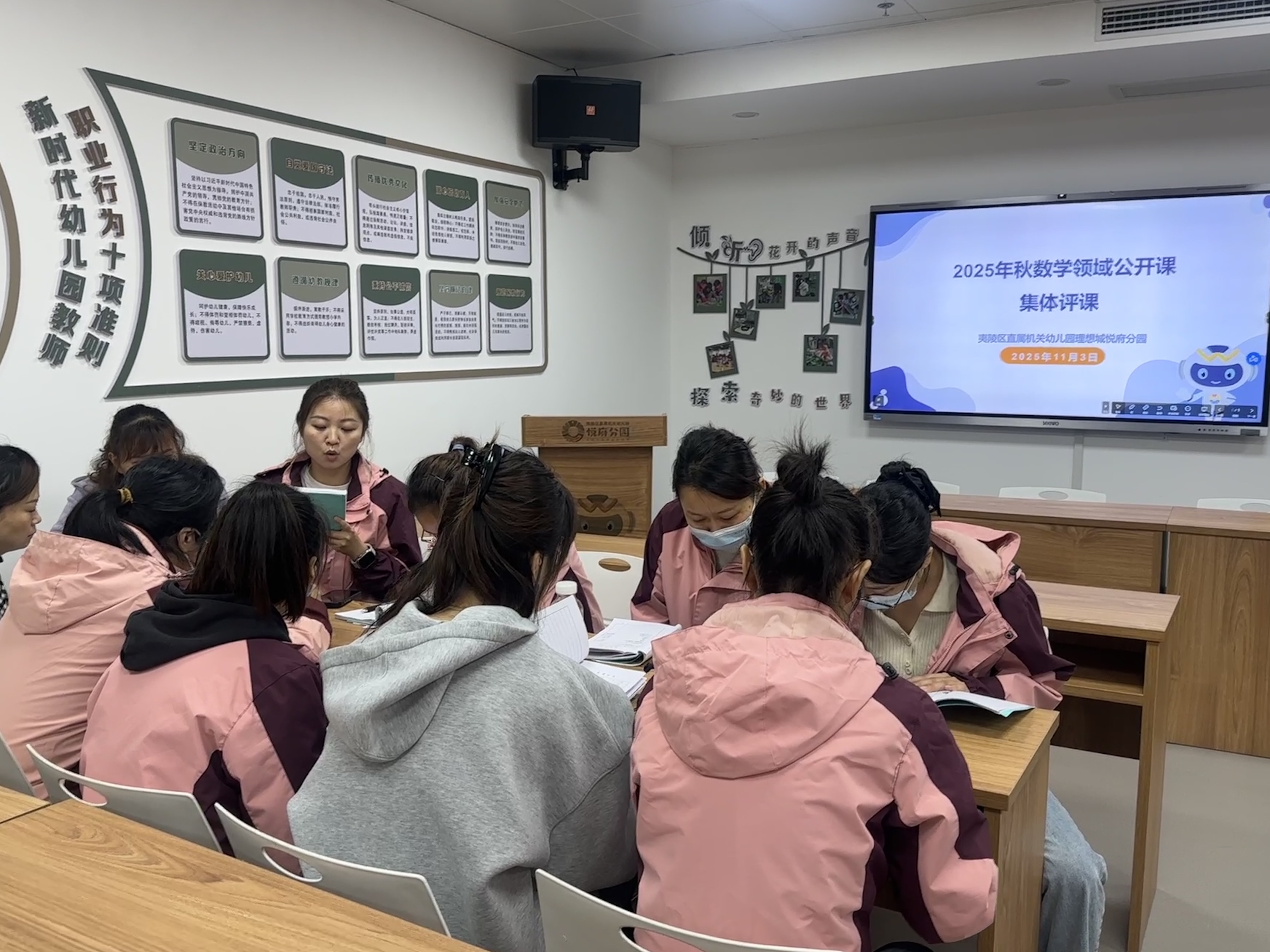 活动结束后,幼儿园组织集体评课。执教教师对活动进行自评后,听课教师从多个维度对本次教学活动进行评价分析。园长黄琴指出教师的备课应建立在对幼儿“最近发展区”的准确把握之上,深入理解数学领域核心经验,以此为依据科学设置活动重难点。在教学过程中,教师要面向全体幼儿,同时兼顾个体差异,确保每一个孩子都能在自身基础上获得发展。此外,操作材料的科学性与教师语言指令的清晰性是支撑幼儿有效探索的关键。教师的课堂语言不仅要清晰准确,更应富有感染力,通过语调的抑扬顿挫吸引幼儿的注意力,激发他们的学习兴趣。