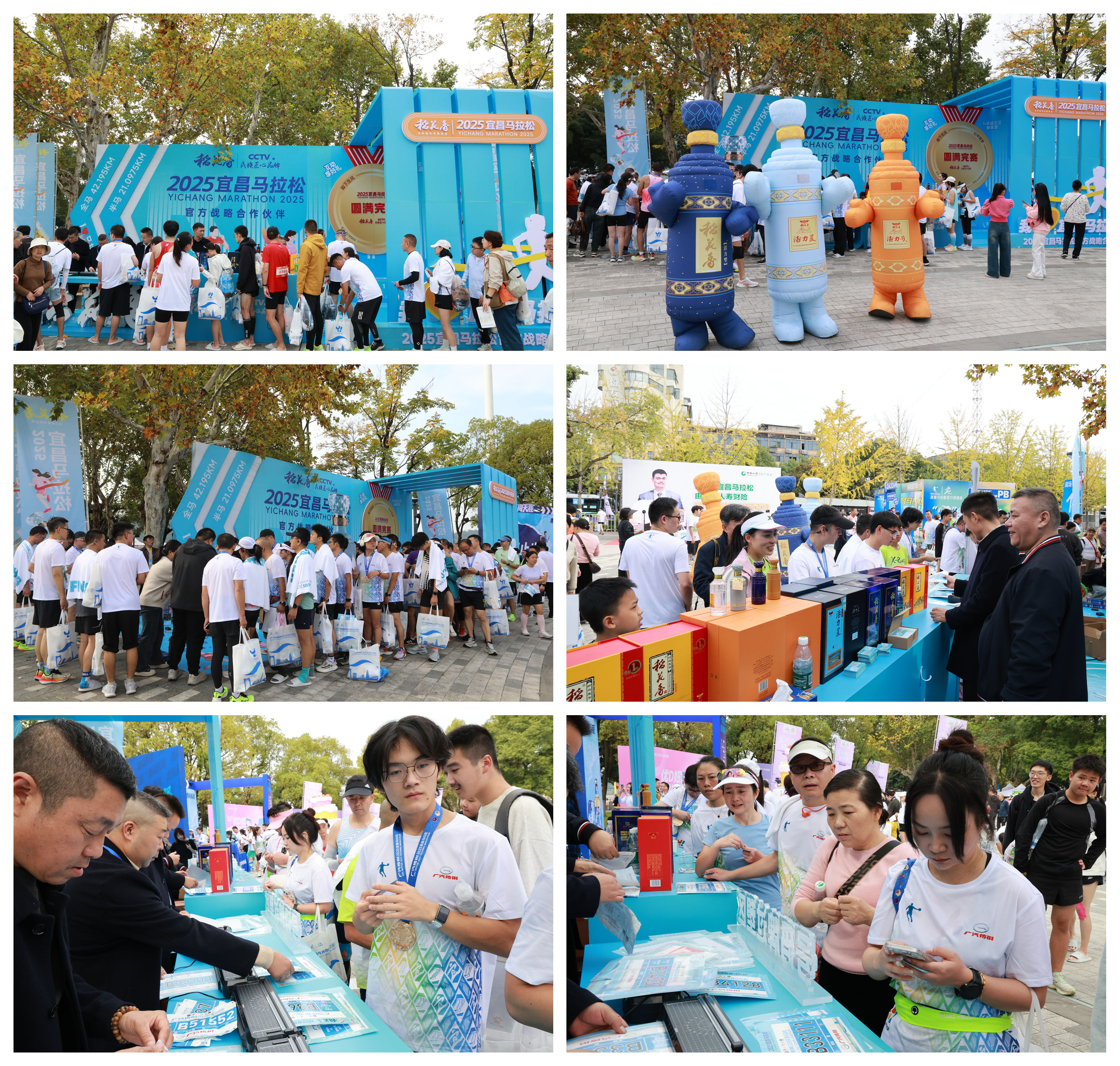 作为赛事多年战略合作伙伴,稻花香今年继续以创新方式助力“宜马”。比赛前,在宜昌市体育馆精心布置了物资领取处,为参赛选手提供贴心服务;赛道沿线,稻花香品牌道旗迎风招展,与秋日江景相映成趣;醒目的品牌展板点缀在赛道两侧,成为选手们奔跑路上的一道亮丽风景。终点区域特别设置的稻花香互动体验区,不仅展示了稻花香核心产品,还提供完赛纪念品、合影留念区及号码牌塑封服务,为选手们珍藏这份独特的参赛记忆。