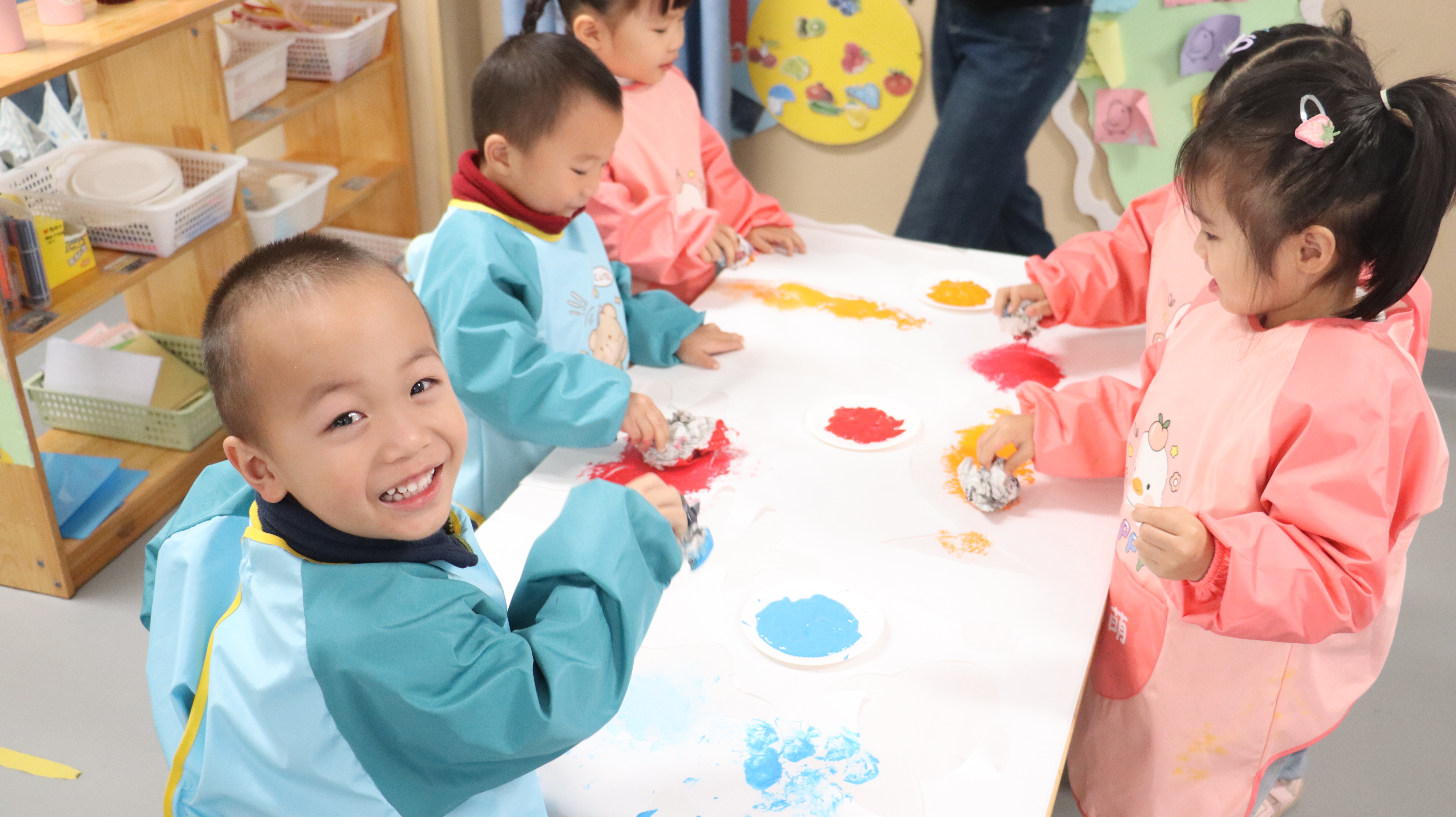 “同课异构”的教学实践中,同一课题绽放出多元的教学风采。小班美术活动《跳舞吧,纸球》中,童正媛、郭春媛、卢梦媛三位老师分别以音乐律动、情境故事等多样化方式导入,有效激发幼儿兴趣。在创作环节,有的注重集体协作,有的侧重小组拓印,让纸球拓印焕发出斑斓色彩与童趣形态。在《独一无二的脸》这一课题中,范东妮老师引导幼儿细致观察同伴的五官特征,完成一幅幅生动肖像;毕爱蓉老师则带领孩子们感受不同情绪,用画笔展现喜怒哀乐的表情世界,课堂成为一场情感与创造的交融盛宴。