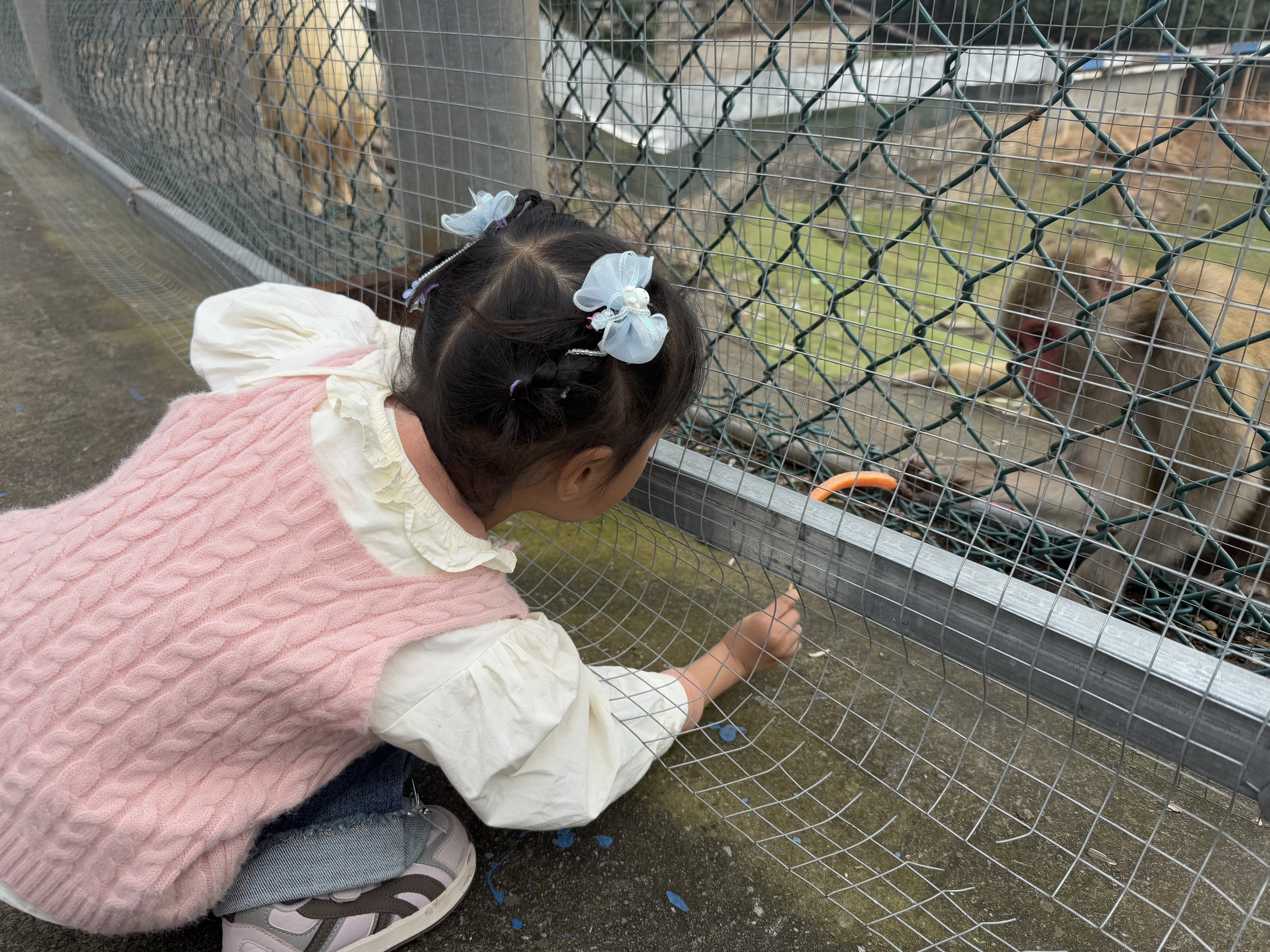 活动围绕不同年龄段幼儿的特点设计了专属探索任务,确保孩子们参与感与收获感十足。小班幼儿紧紧牵着家长的手,眼中满是对动物世界的好奇与兴奋。他们在家长的引导下穿梭于园区,认真寻找山羊、孔雀、小鹿等目标动物,在趣味搜寻中认识动物的外形特点。每一次与小动物的亲密互动,都让孩子们脸上洋溢着惊喜。大班孩子则化身“小小探险家”,用敏锐的眼睛观察动物习性,从熊猫偏爱竹子的食性,到老虎矫健的奔跑姿态,他们仔细记录下每一个发现,在实践中加深了对动物的认知。