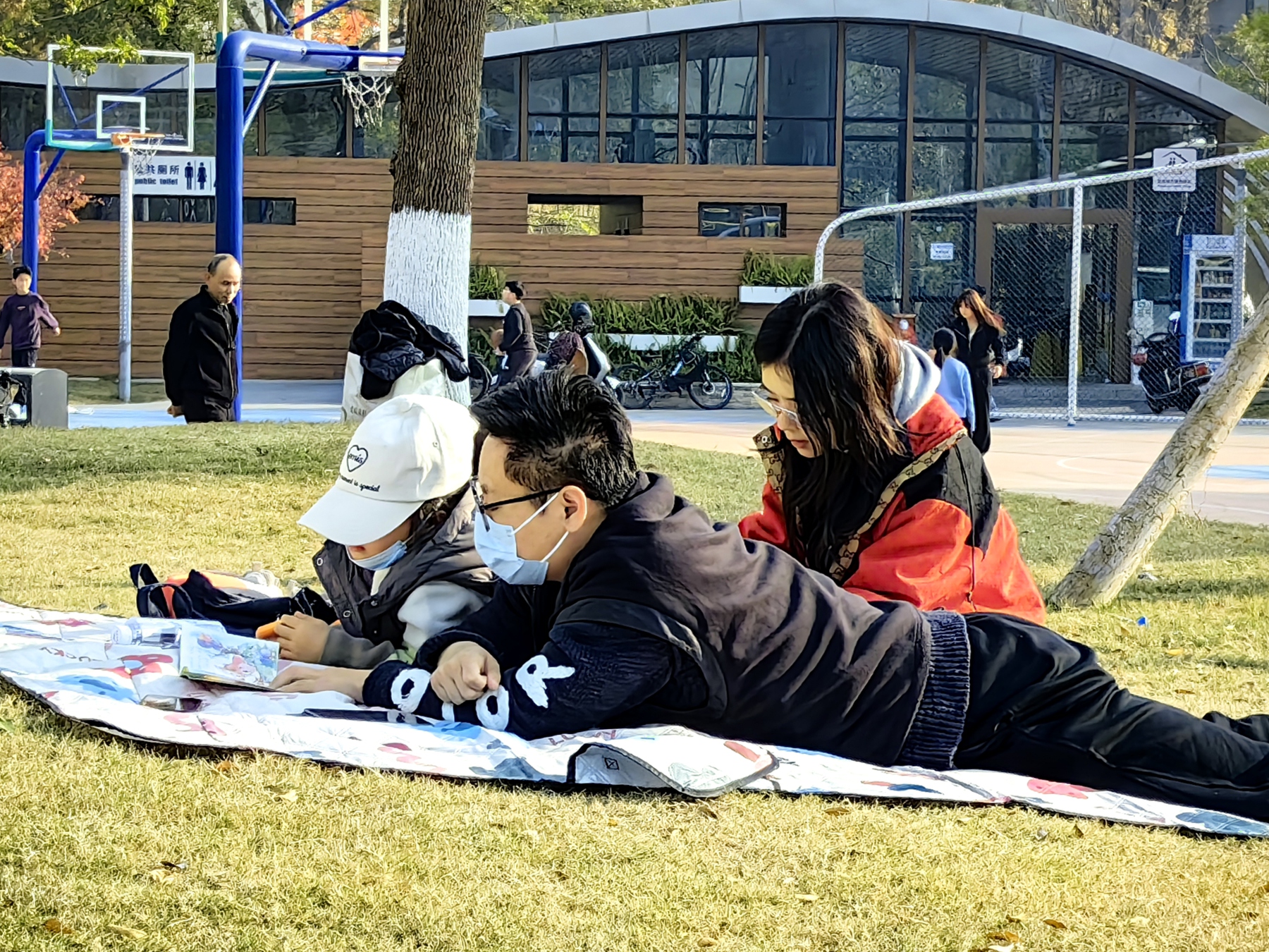 一旁的草坪上,父母陪伴孩子沉浸阅读;另一边的广场上,老师正带领孩子们开展户外知识探索活动……每一幕都洋溢着温馨与活力。