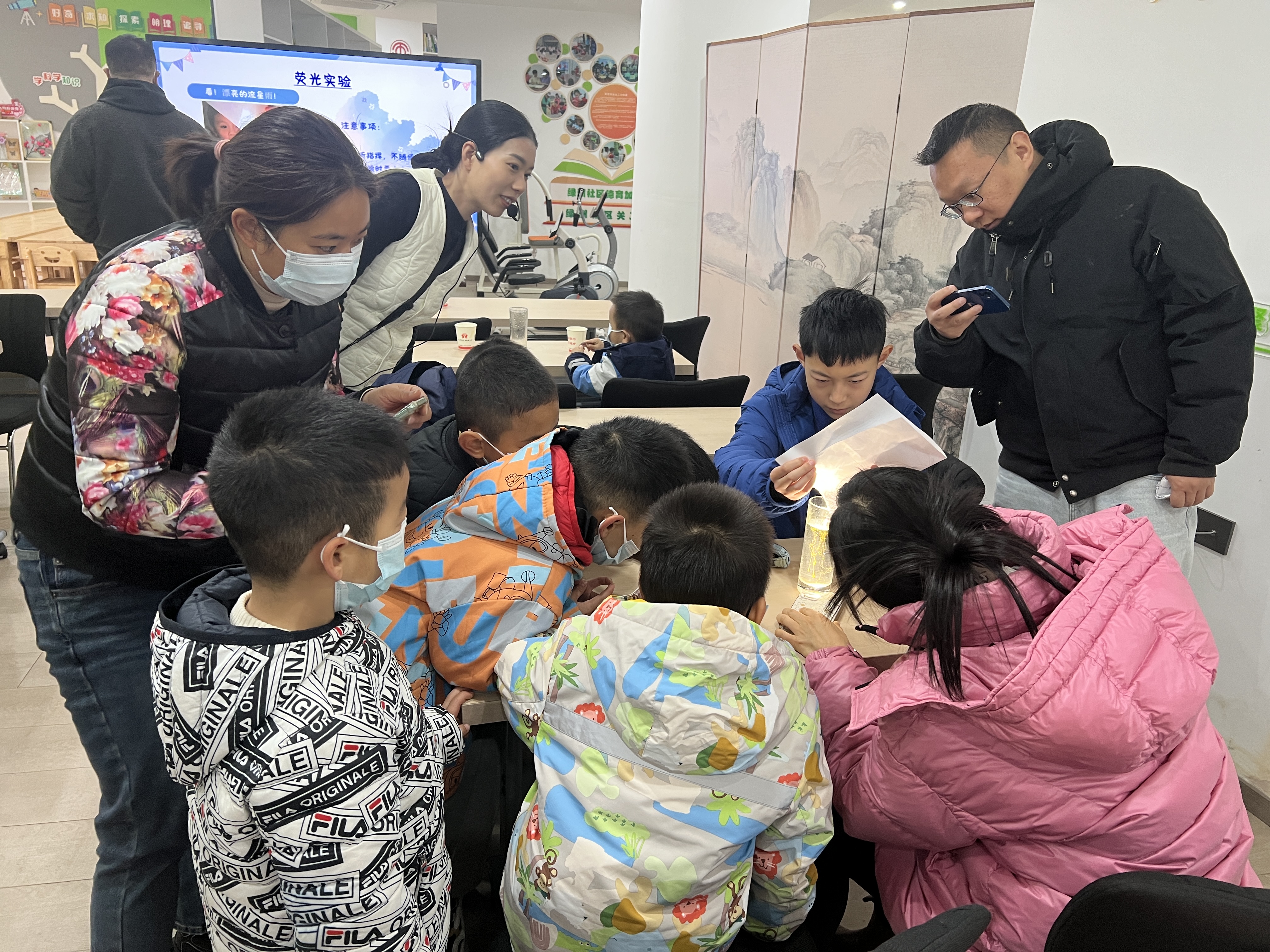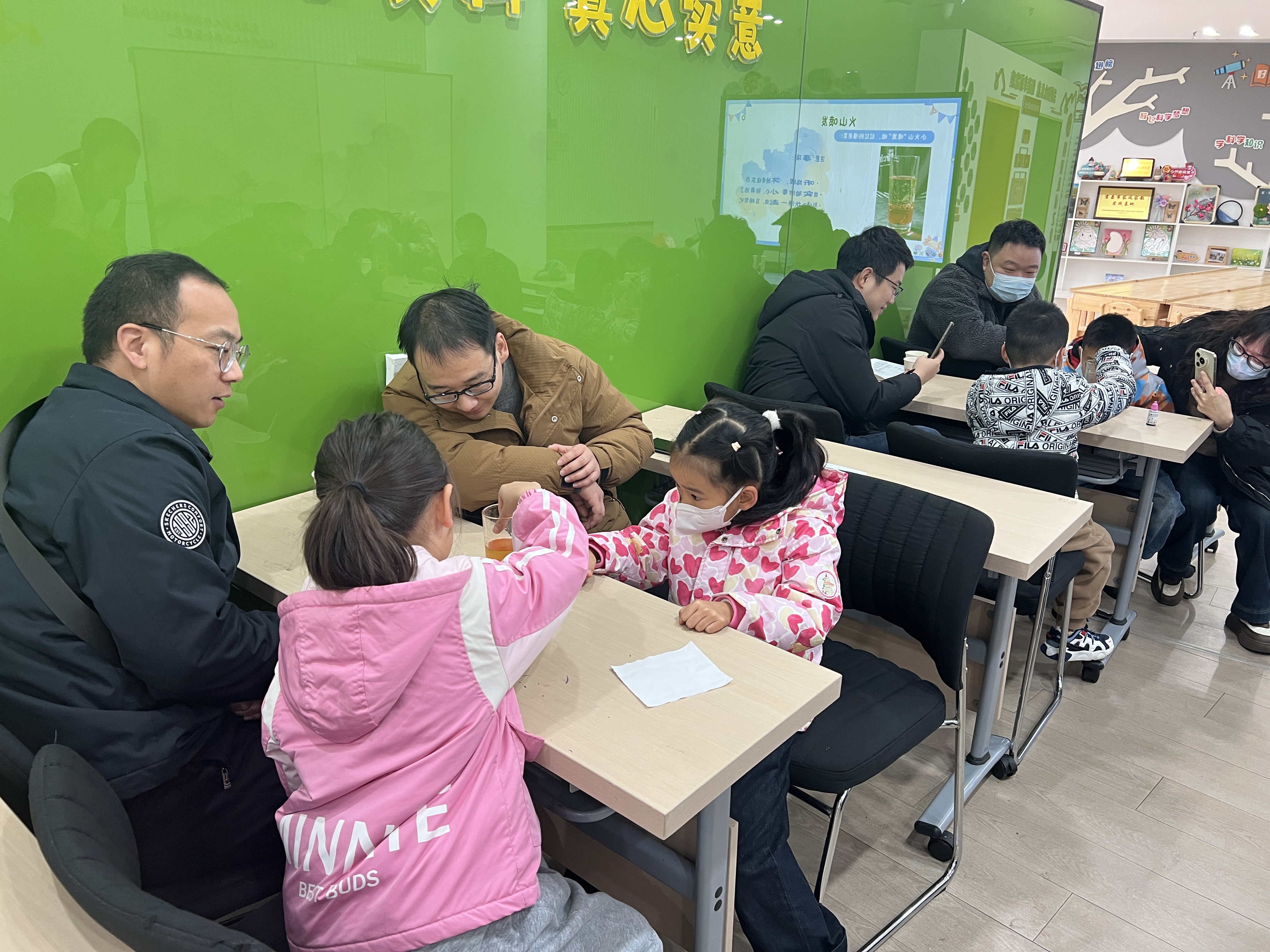 活动一开始,10分钟的互动便点燃了现场氛围。杨梦竹老师带领孩子们玩起“科学小问答”趣味游戏,“彩虹有几种颜色”“火山为什么会喷发”……一个个简单的问题让孩子们争相举手,稚嫩的声音此起彼伏,原本陌生的小伙伴很快打成一片,脸上都洋溢着灿烂的笑容。