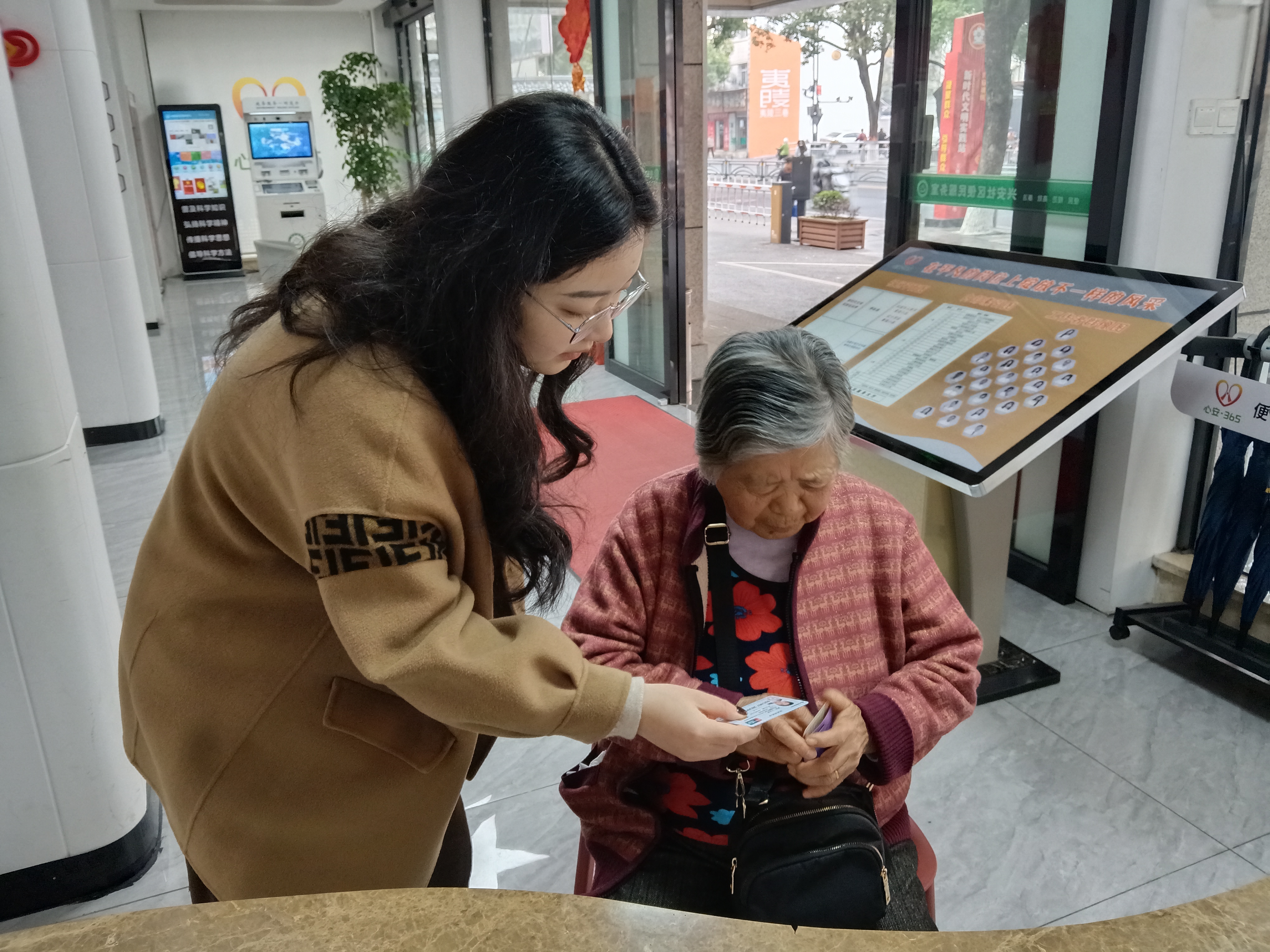 王奶奶年事已高,行动不便,子女又常年不在身边,整理杂物时不慎将社保卡遗失,自己既不清楚补办流程,也不知道要去哪家银行办理,只能向社区寻求帮助。了解情况后,网格员第一时间查询了社保卡补办的指定银行和所需材料,考虑到老人独自出门多有不便,当即决定陪同老人前往银行办理。
