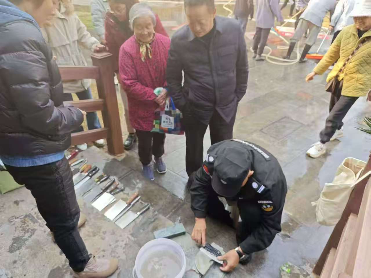 活动现场秩序井然,气氛温馨融洽。磨刀服务点上,经验丰富的老师傅手法娴熟,让一把把钝刀重现锋利;地毯清洗区里,高压水枪将一块块地毯冲刷得焕然一新。业主们一边有序等候,一边亲切交流,纷纷称赞这样的活动切实解决了生活中的实际需求。