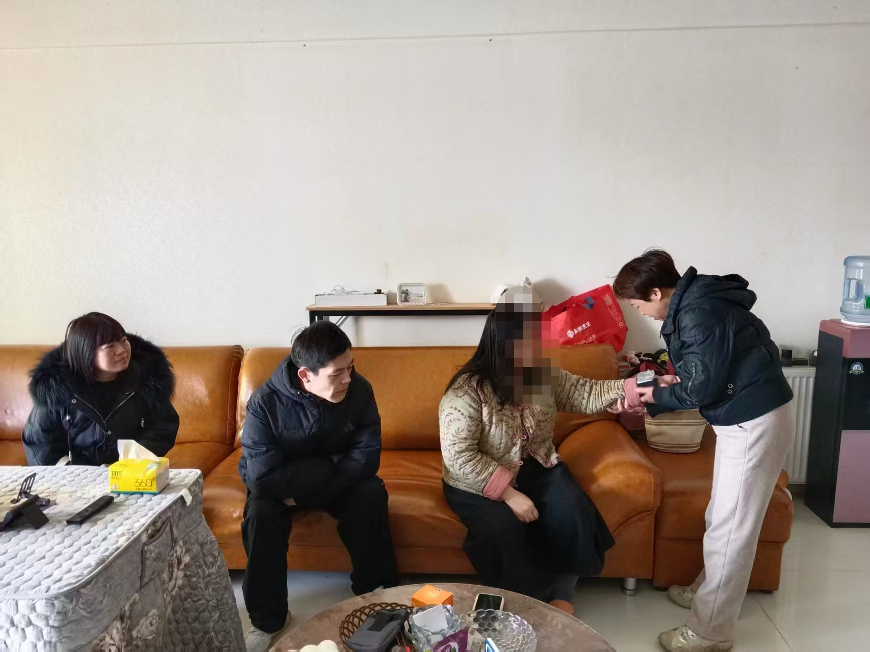 走访过程中,医护人员详细询问患者的日常饮食、用药情况和身体感受,认真记录检查数据,并为有需求的患者进行血压测量以及日常护理、用药安全及病情稳定期的注意事项进行提醒。社区工作人员则与患者家属亲切交谈,了解患者的生活状况和实际困难,宣传相关帮扶政策,鼓励家属树立信心,积极配合做好患者的日常照护。