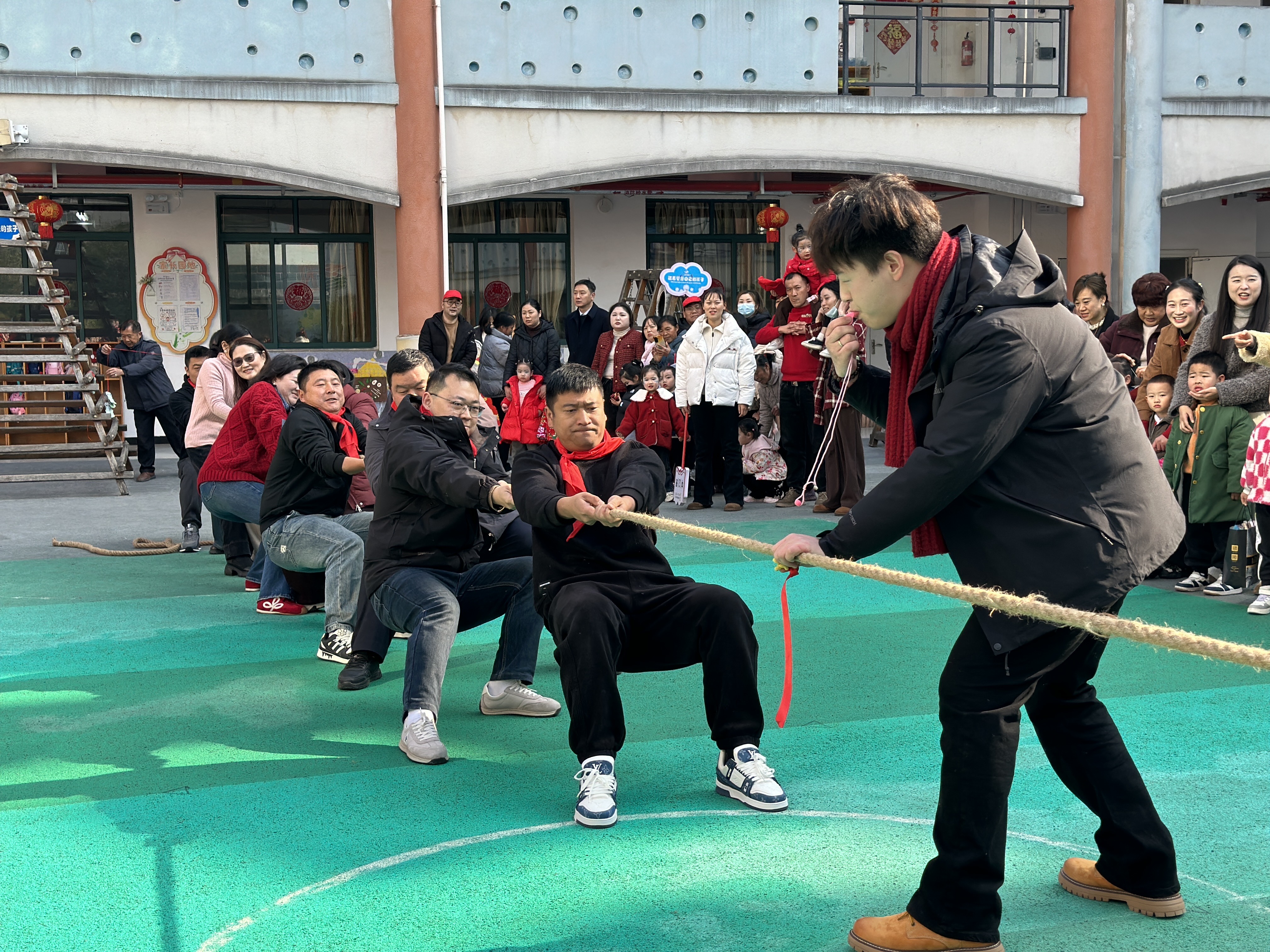 文艺表演结束后,趣味十足的“我的小马闯关记”系列游戏精彩上线。孩子们手持闯关卡,与爸爸妈妈相互配合、携手闯关,在轻松愉悦的游戏氛围中体验合作的乐趣,感受亲子相伴的幸福。最后,团体竞技项目“萌趣小马拔河赛” 将活动气氛推向顶峰,各班家长分组集结、奋力角逐,孩子们在场边挥舞小手、呐喊助威,欢呼声、加油声此起彼伏,现场俨然成为一片欢乐的海洋。
