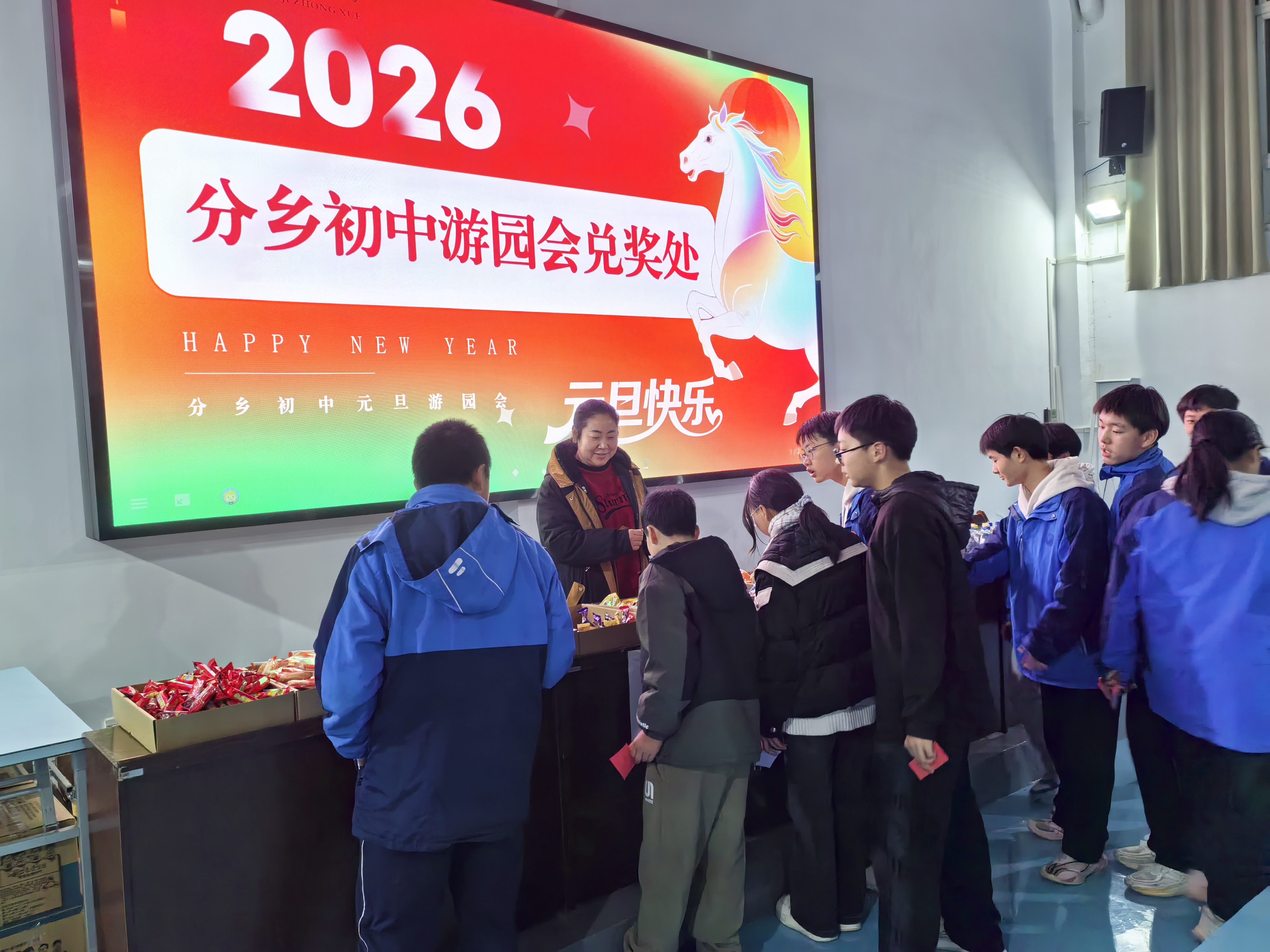岁聿云暮,新元肇启。12月30日晚,分乡初中校园内红灯高悬、福韵满盈,以“传承中国传统文化”为核心主题的2026元旦游园会热闹启幕。