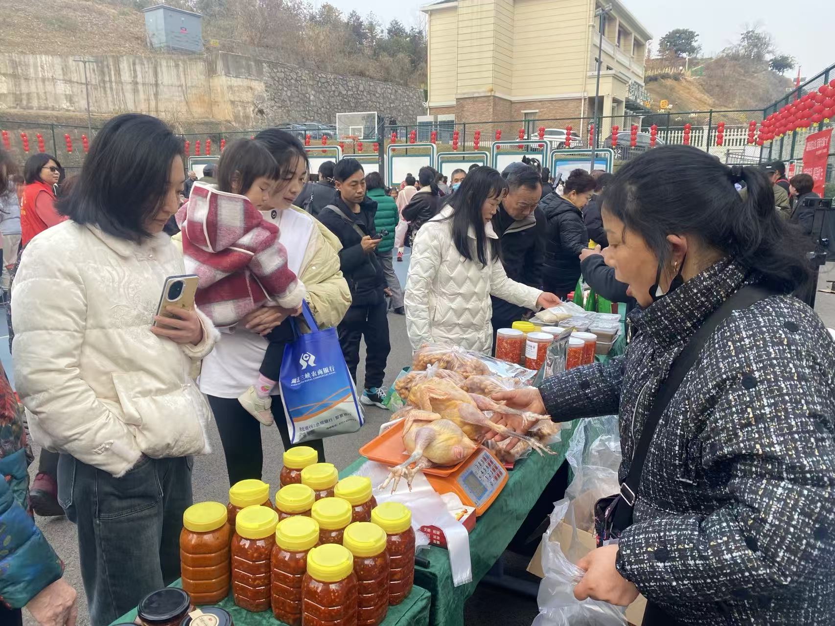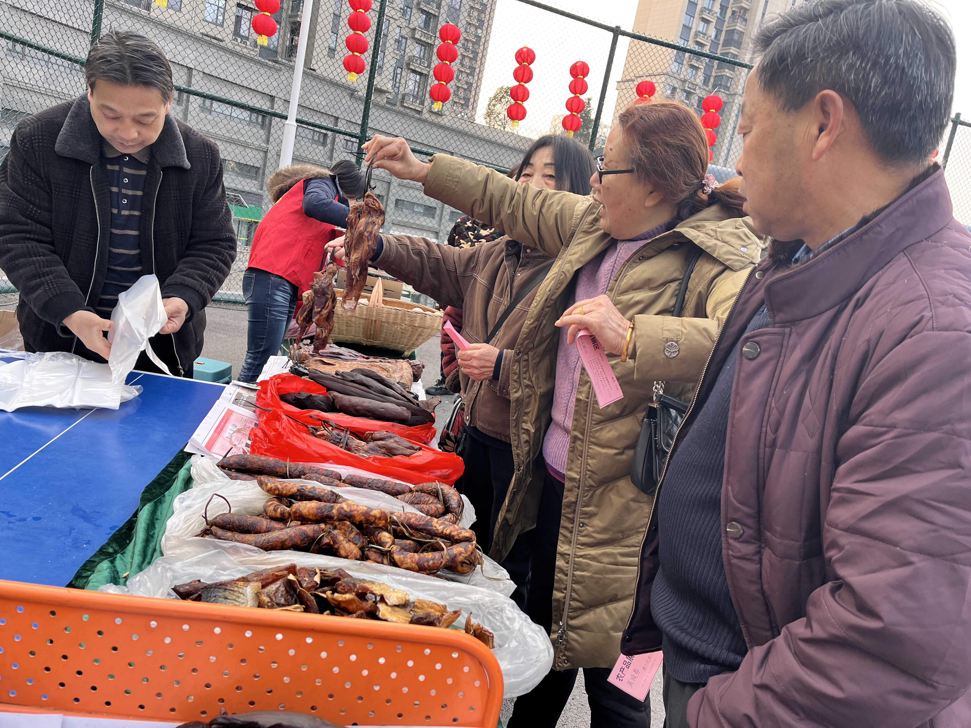 最具烟火气的农产品展销区,成为活动的“人气高地”。秀水村村民带来的粮食猪、散养山羊、手工粉条、土法腌制腊肉、自制豆腐乳等特色农产品,刚一摆上展台就吸引了大批社区居民驻足选购。“这些都是我们村里原生态种养、手工制作的,没有添加防腐剂,味道正宗!”秀水村村干部热情地向顾客介绍,现场称重、打包、付款有条不紊,热闹非凡。据统计,活动当天累计销售各类农产品超2万元,既让村民实现了增收,也让社区居民买到了放心、优质的农家好物。