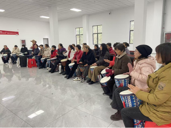 “从跟不上拍到集体合鼓,成就感满满。”李大姐的感慨道出了大家的心声,也印证了非洲鼓作为教学内容的精妙——易上手、趣味性强的特点,精准匹配了乡村居民的文艺需求。