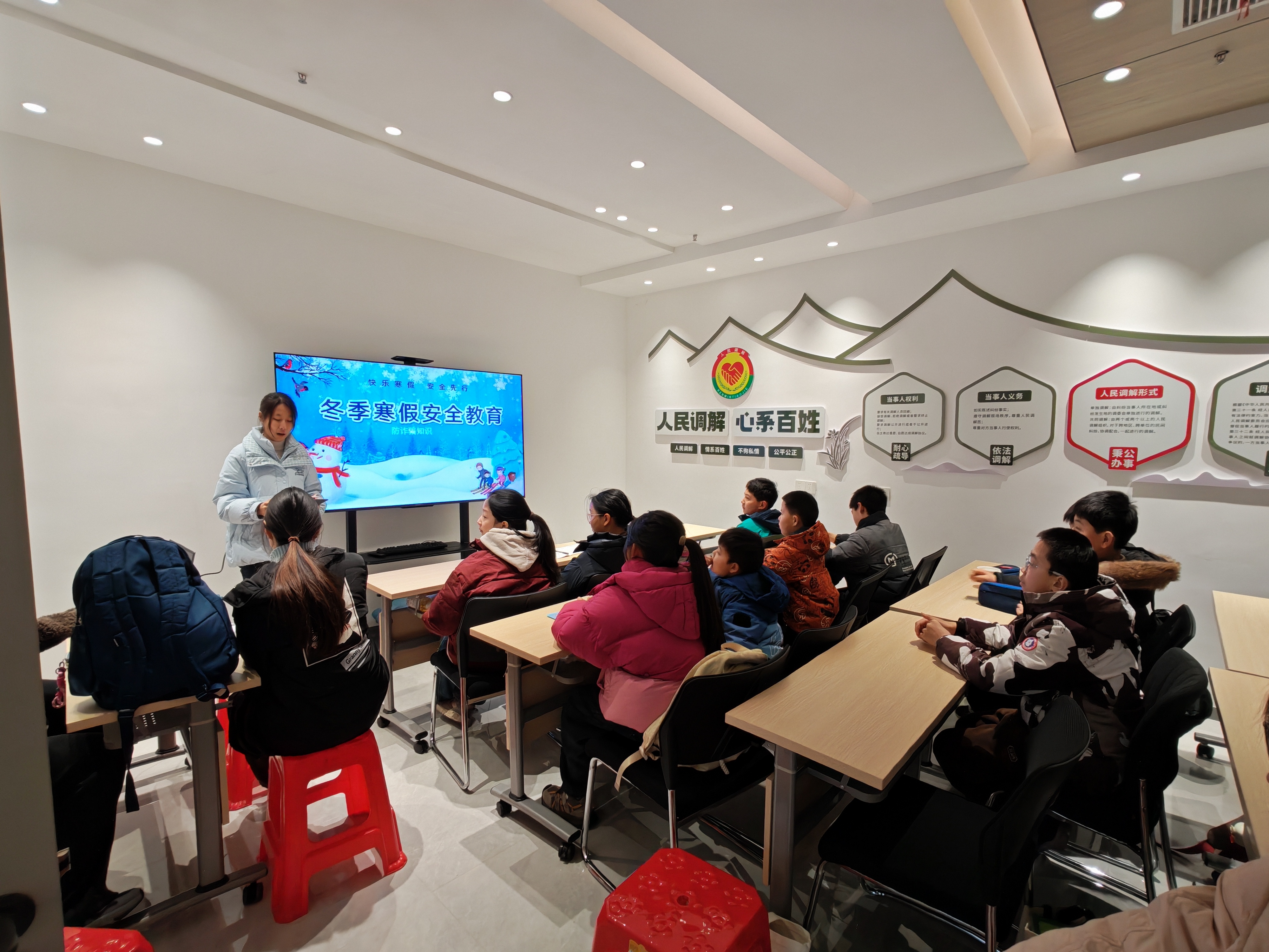 开班仪式上,社区负责人向孩子们介绍了寒托班课程安排及安全保障措施,强调寒托班以“安全第一 寓教于乐”为原则,切实为家长减负、为孩子赋能。随后,安全知识宣讲环节同步开展,寒托班志愿者结合寒假特点,用通俗语言讲解交通出行、居家用电、冬季防火、食品安全等知识,通过真实案例提醒孩子们提高自我防护意识,规避各类安全风险。