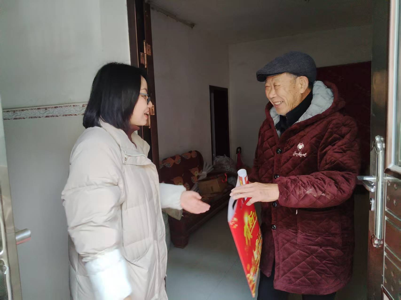 社区考虑到部分老兵行动不便,志愿者们精心将春联、福字打包整理,逐一上门送达。一副副笔力遒劲、寓意吉祥的春联,一个个红彤彤的“福”字,承载着社区对退役军人的深切关怀与美好期许。志愿者们不仅为老人送上春联,还细心询问了他们的饮食起居和健康状况,叮嘱他们冬季注意保暖,注意水电燃气的安全使用,有困难及时向社区反映。