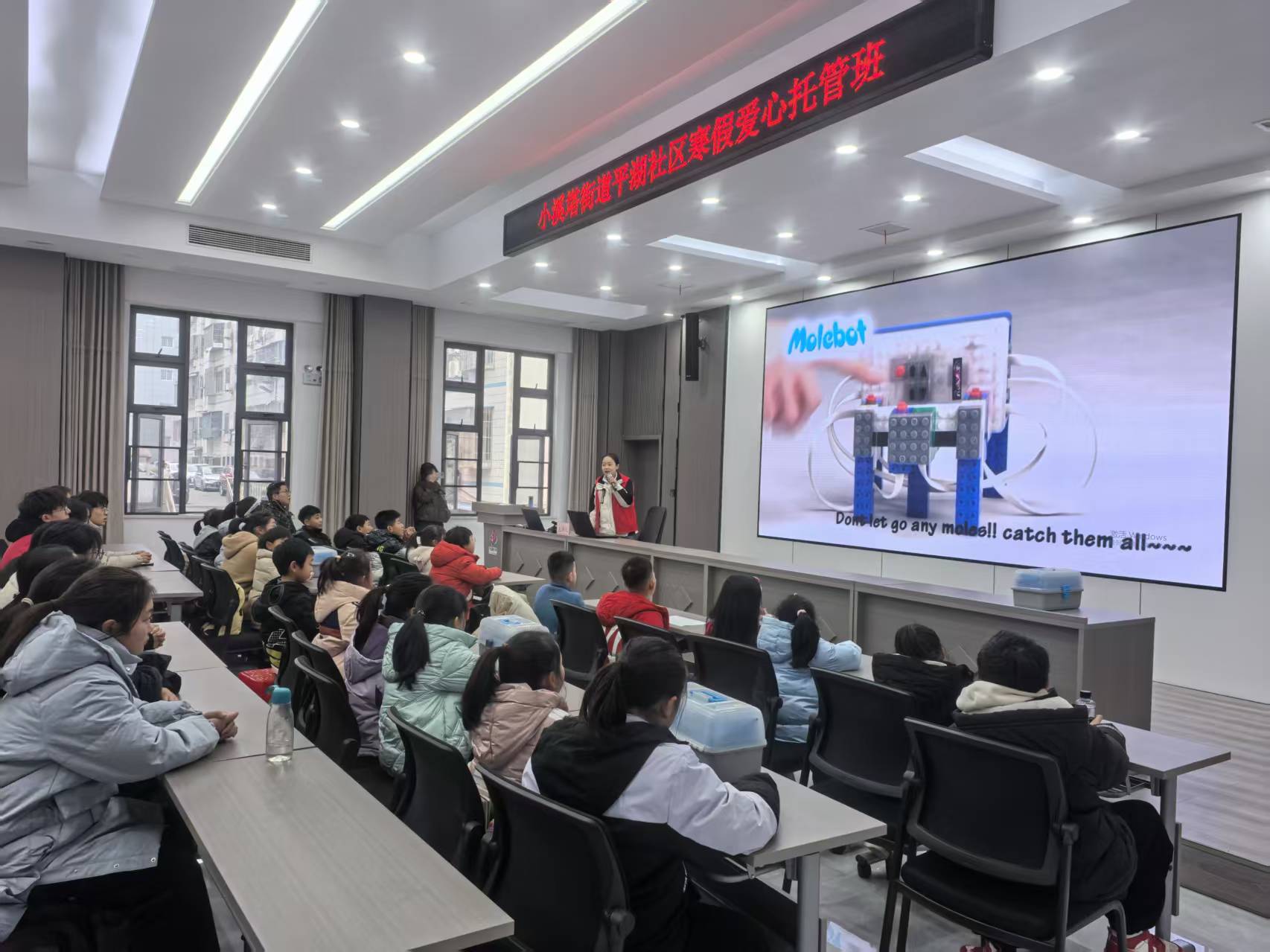 2月4日下午,小溪塔街道平湖社区寒假爱心辅导班变身“机器人实验室”,一场趣味科普课让孩子们直呼过瘾。