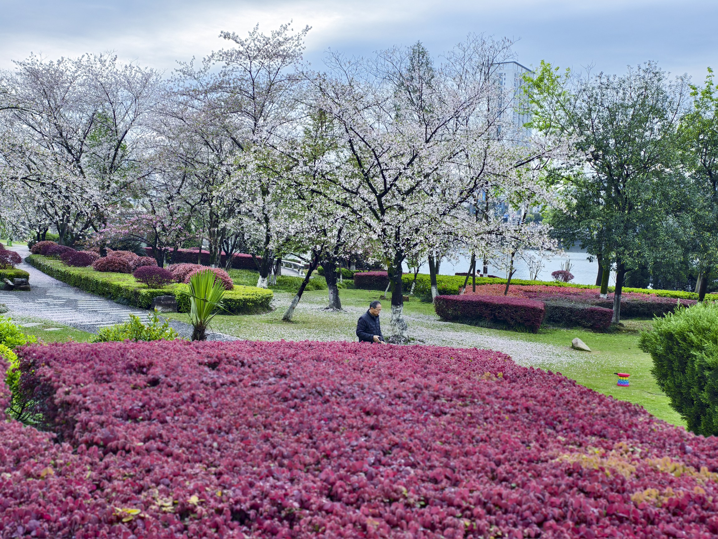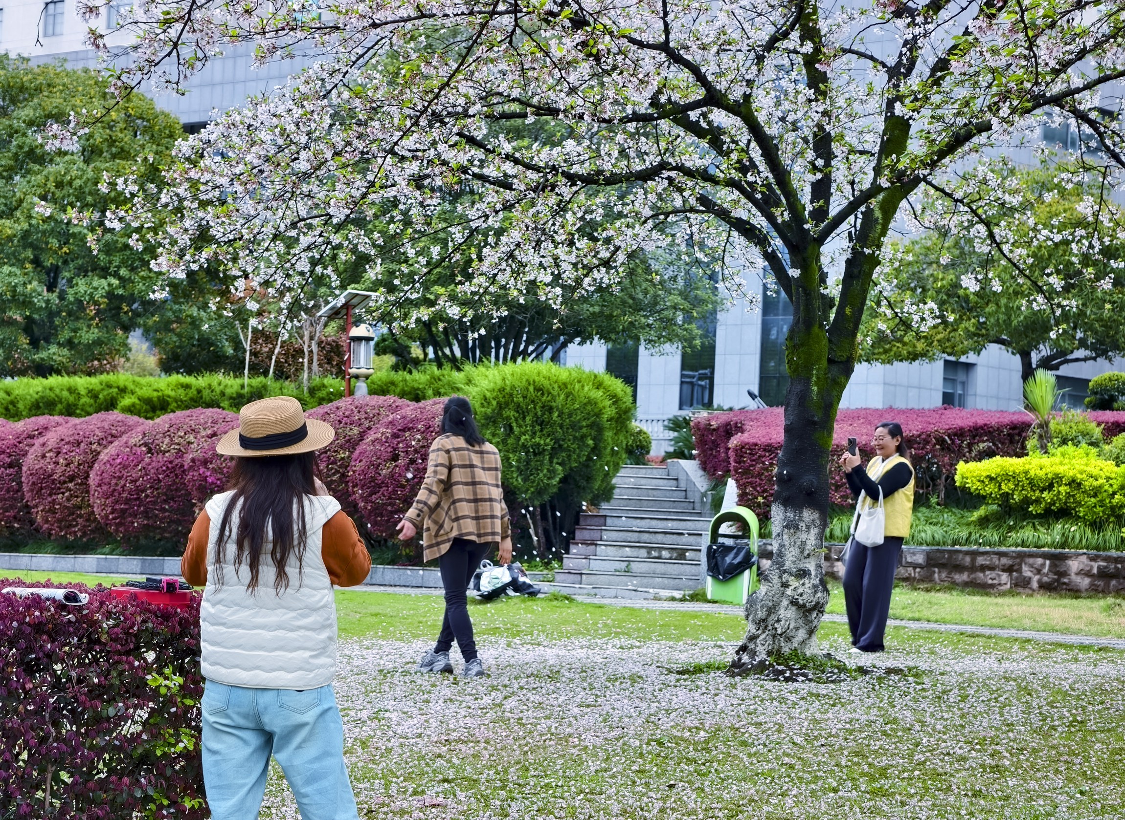 雨后空气清新,草木愈发葱郁,粉白樱花与园内绿植相映成趣,引得不少市民前来打卡留念。大家漫步花径,或驻足拍摄落樱盛景,或与繁花合影,定格这份春日限定的浪漫,在落樱纷飞中尽享春日美好。
