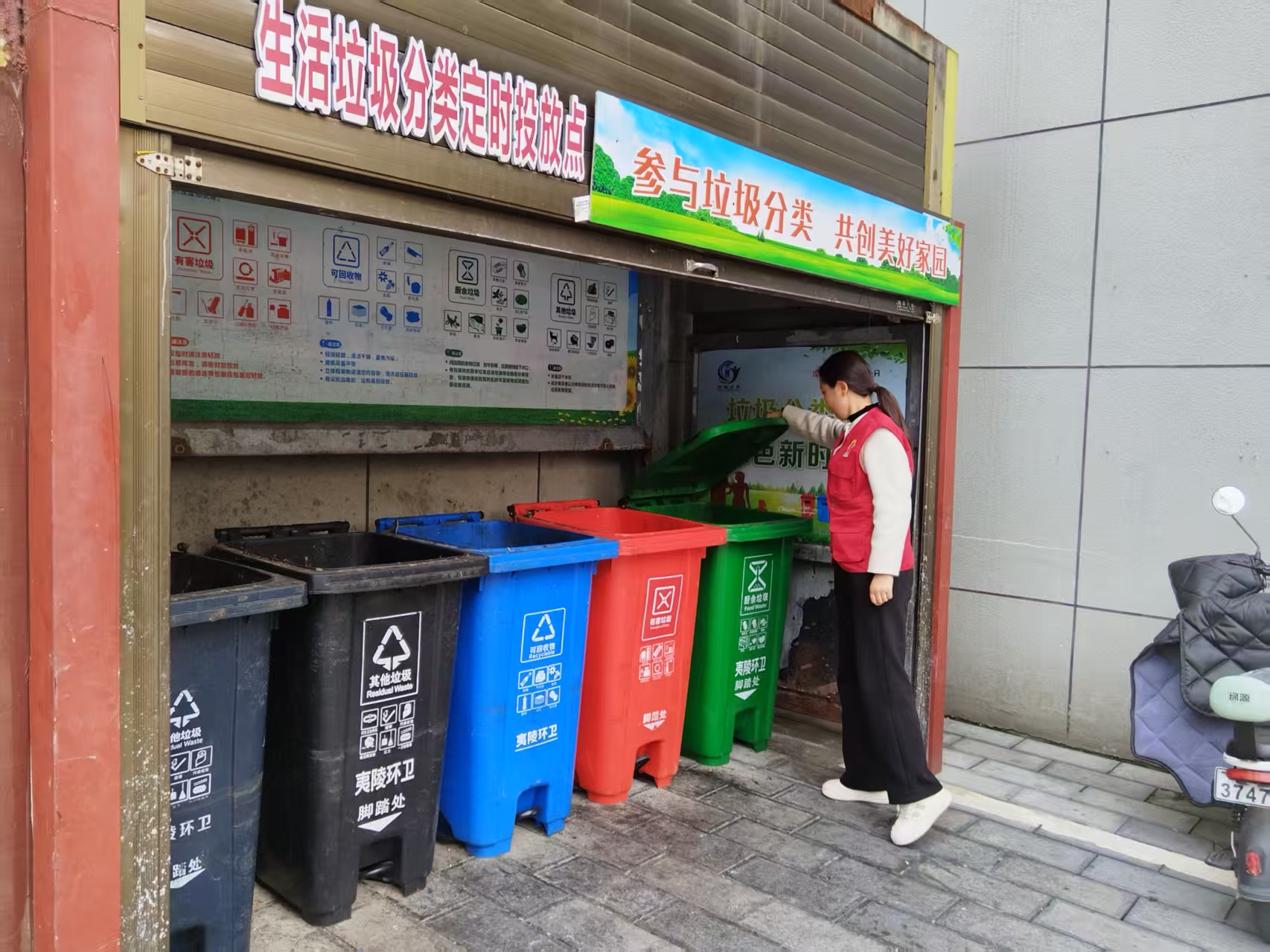 近日,小溪塔街道朝阳社区组织工作人员深入辖区各垃圾分类投放点,开展专项巡查行动。