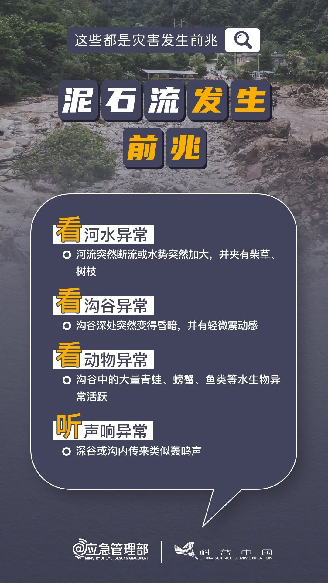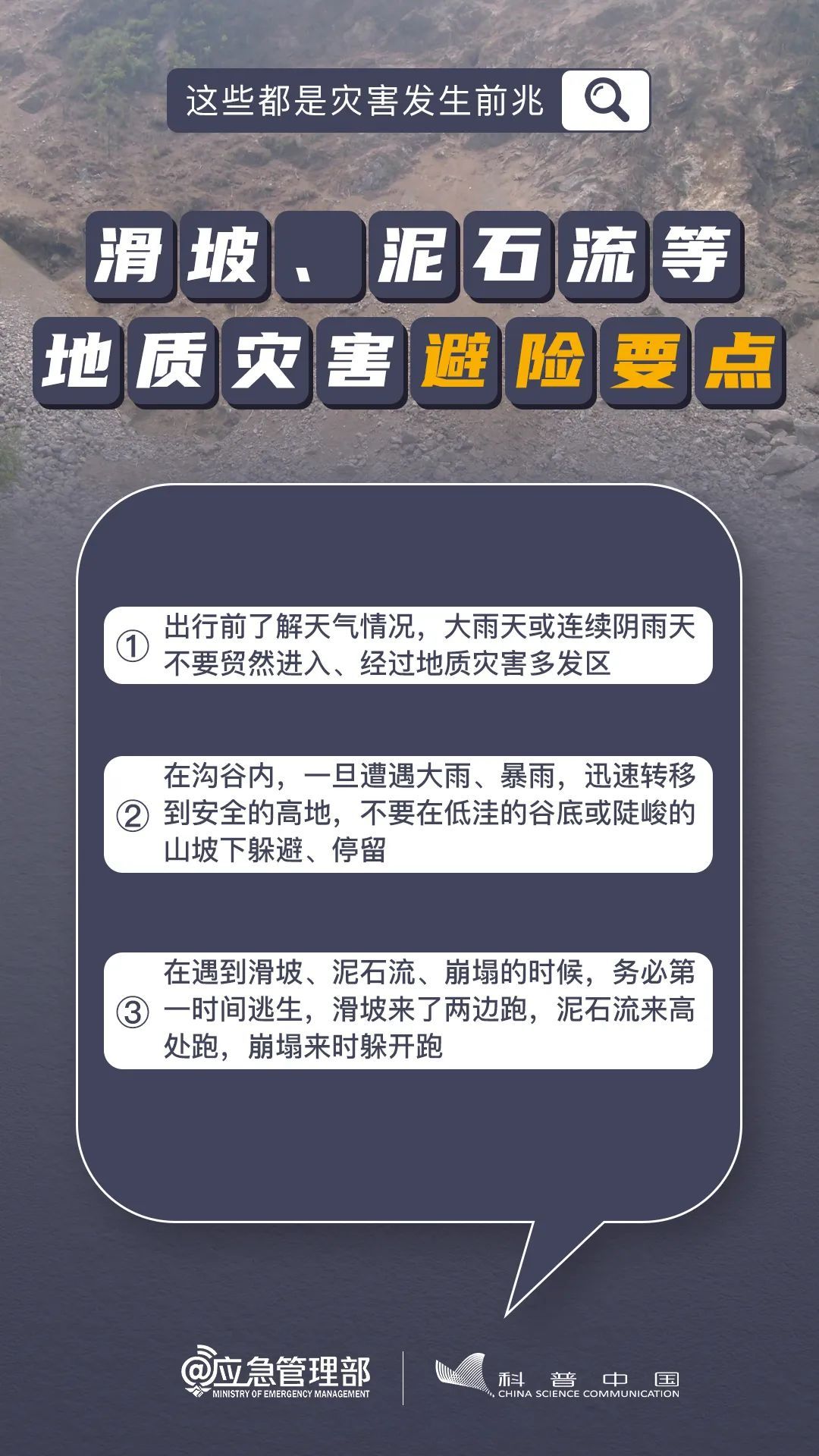 ④做好山洪、滑坡、崩塌、泥石流等灾害的防御和抢险工作,转移危险地带人员和危房居民至安全场所。