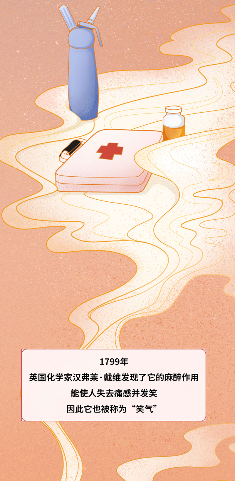 “笑气”,即一氧化二氮(Nitrous Oxide,N₂O),是英国科学家约瑟夫·普利斯特里在1772年发现的一种在室温下无色、稍带甜味的气体。1799年,英国化学家汉弗莱·戴维发现吸入该气体可使人丧失痛觉、感到欣快、致人发笑,故称其为“笑气”。