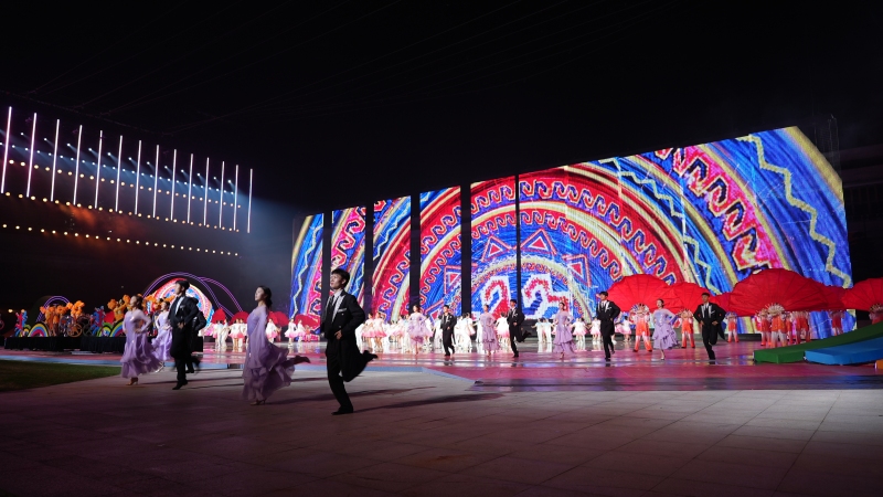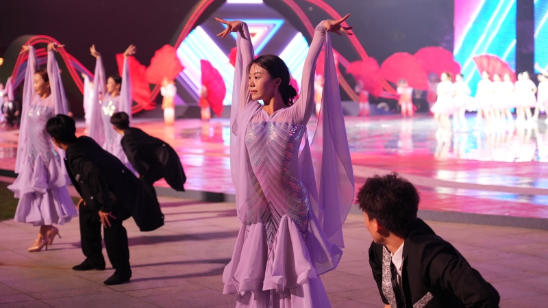 宜昌市第七届运动会开幕式将于10月10日在夷陵文化中心举行。10月7日晚,夷陵区文化中心灯火通明,一千多名演员在微凉的夜风中翩翩起舞,开启了首次全要素合成彩排。这场筹备已久的文体盛典正式进入最后冲刺阶段。