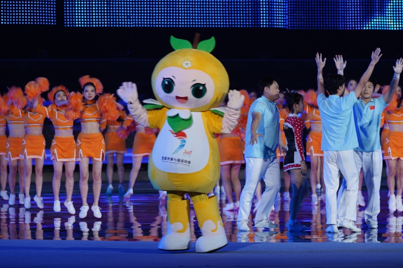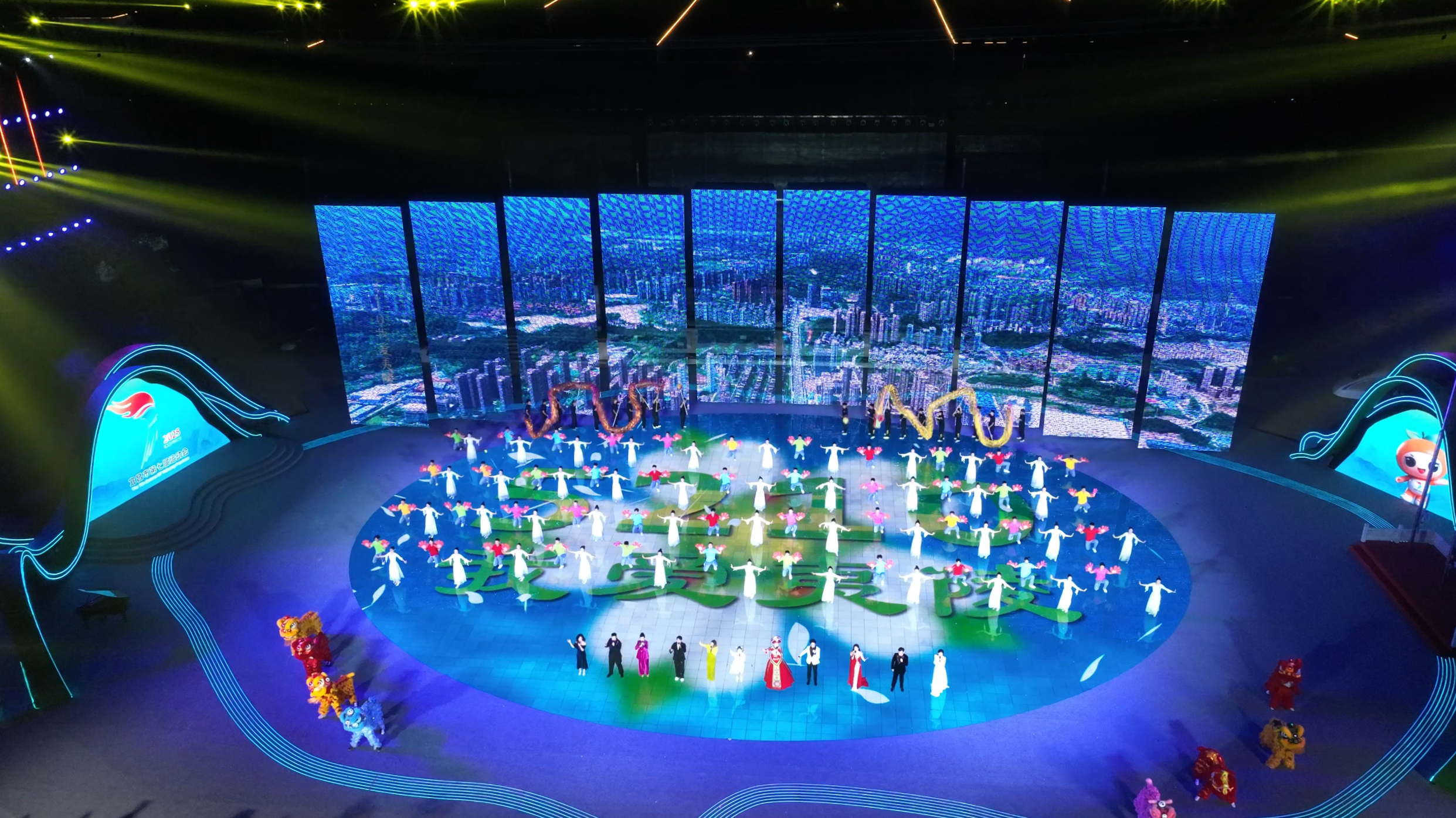 在“来电宜昌 至喜夷陵”的齐声倒数中,在全场目光的汇聚之处,随着“后皇嘉树,橘徕服兮”的悠扬吟诵,大屏幕上一颗巨大的橘子树画卷徐徐展开,吉祥物“橘嘟嘟”从枝头跃下,蹦跳着来到版画老者身边,拉开了开幕式《江水奔涌 来电宜昌》篇章的序幕。一场以城市为舞台、以“山水”为背景的文体盛宴正式启幕。