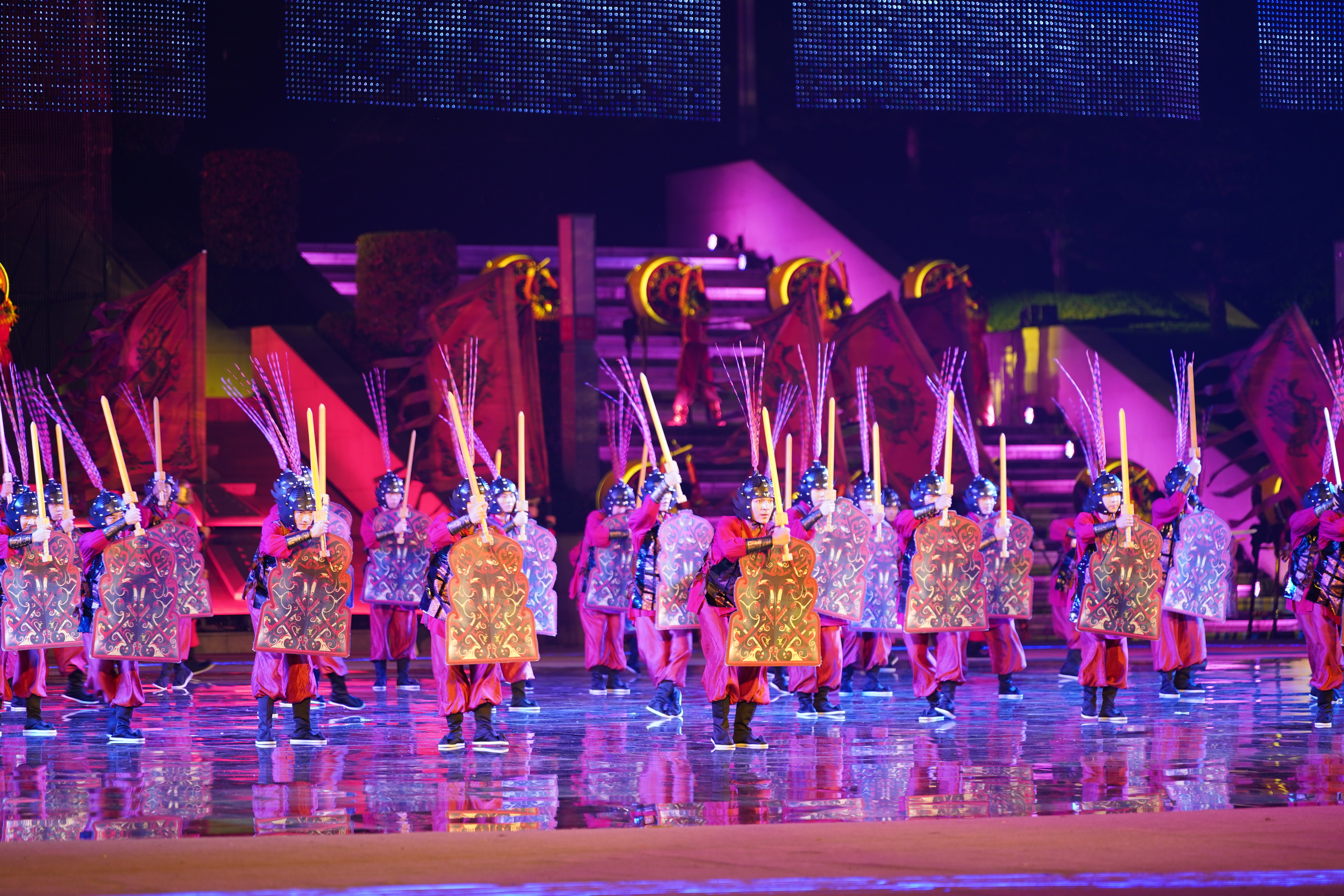 演出以“水”为主线,通过《巴山楚水 千年回响》《峡江竞秀 击水逐浪》《大道通途 华光绽放》三个篇章,一幅跨越千年的历史长卷在光影间流转,巴山楚水与现代盛景在虚实中交融,最终汇成一曲激昂奋进的时代交响,让观众在感受体育精神的同时,触摸这片土地厚重的历史文化,见证夷陵儿女包容奉献、实干争先的精神,以及在先行区建设中扛起核心引擎的奋进姿态。