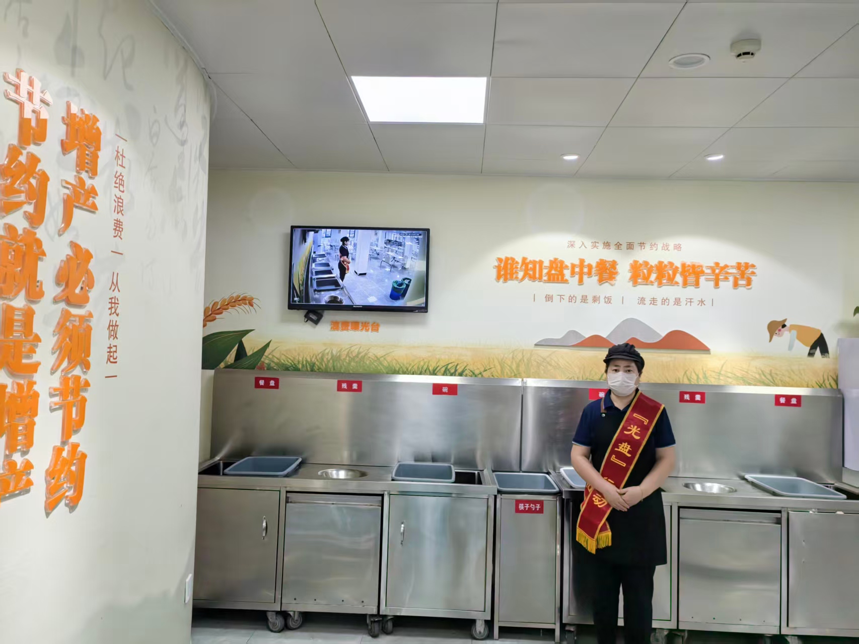 今年以来,夷陵区机关事务服务中心始终坚持“过紧日子”要求,在机关食堂多措并举推进节粮减损行动。在机关食堂取餐窗口等醒目位置统一张贴宣传标识,营造“节约光荣、浪费可耻”的浓厚氛围;制定标准化日食谱、周食谱,科学供餐,从源头上减少餐饮浪费;设立“文明监督岗”,劝阻和制止餐饮浪费行为,推动节约型机关建设走深走实。